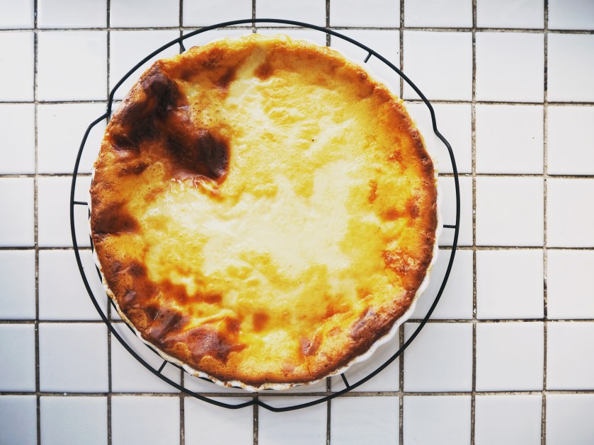 I love custard. I love everything related to custard. I don’t like drinking milk, but I love the milky taste of custard, combined with eggs of course. This pie is a perfect example of milky, sweet custard – as a pie, but without a crust.
