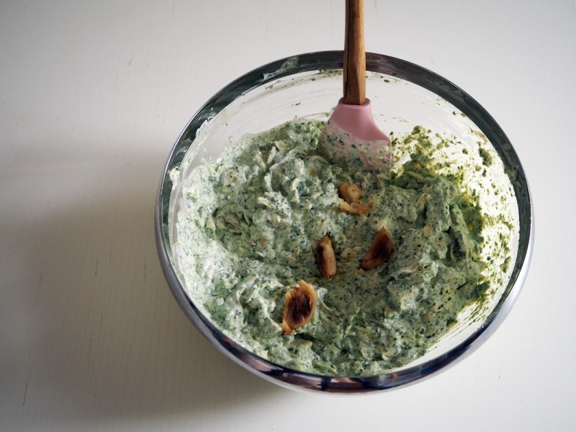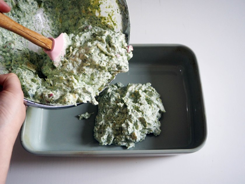 *You can use 150 gr. fresh spinach and finely chop it, or you can buy frozen finely chopped spinach, thaw and drain it – after thawing and draining, it should make 150 gr. so you must buy the packages accordingly. I used frozen spinach, and I got this amount from 2 packs of spinach each 200 gr.