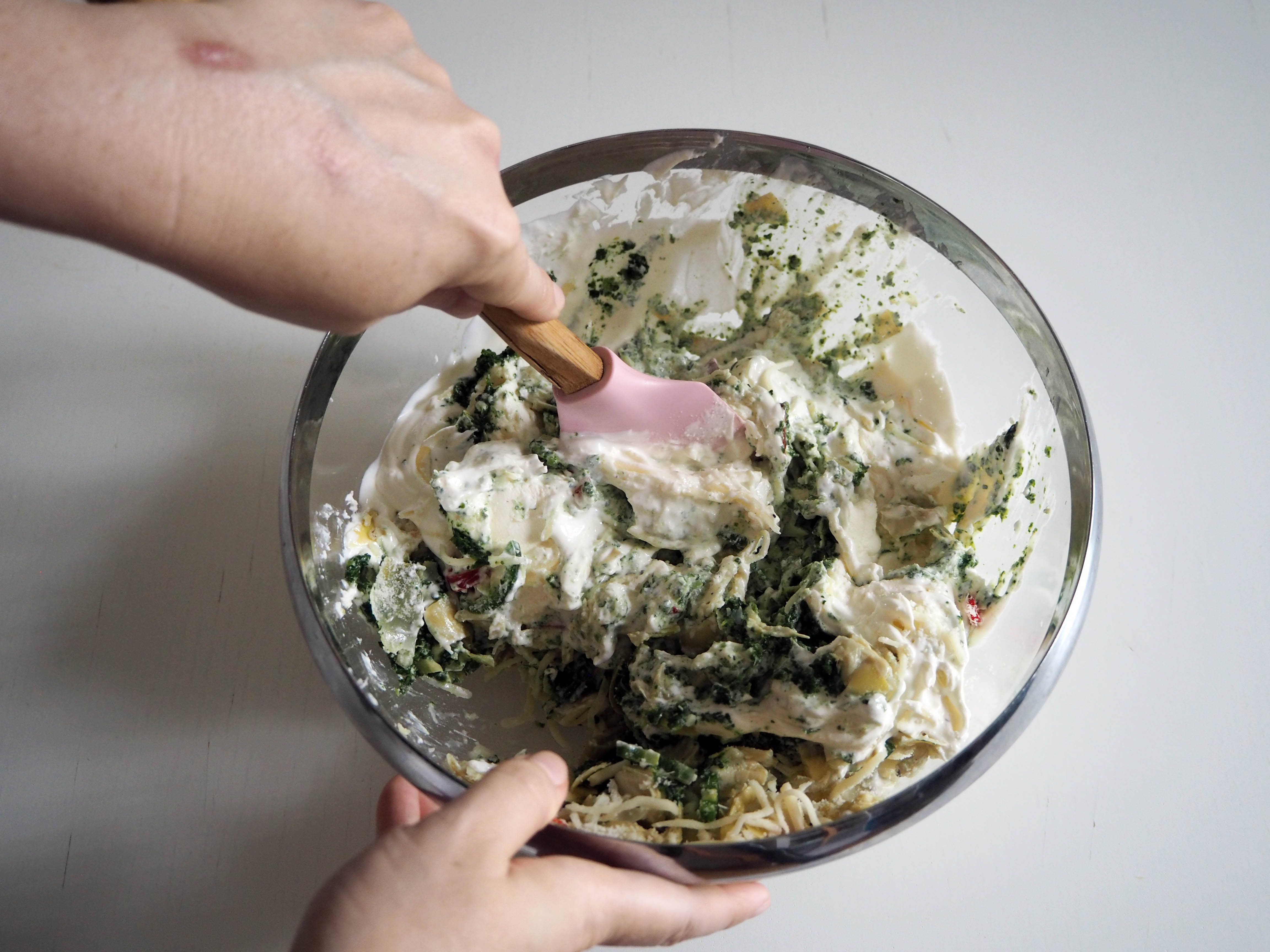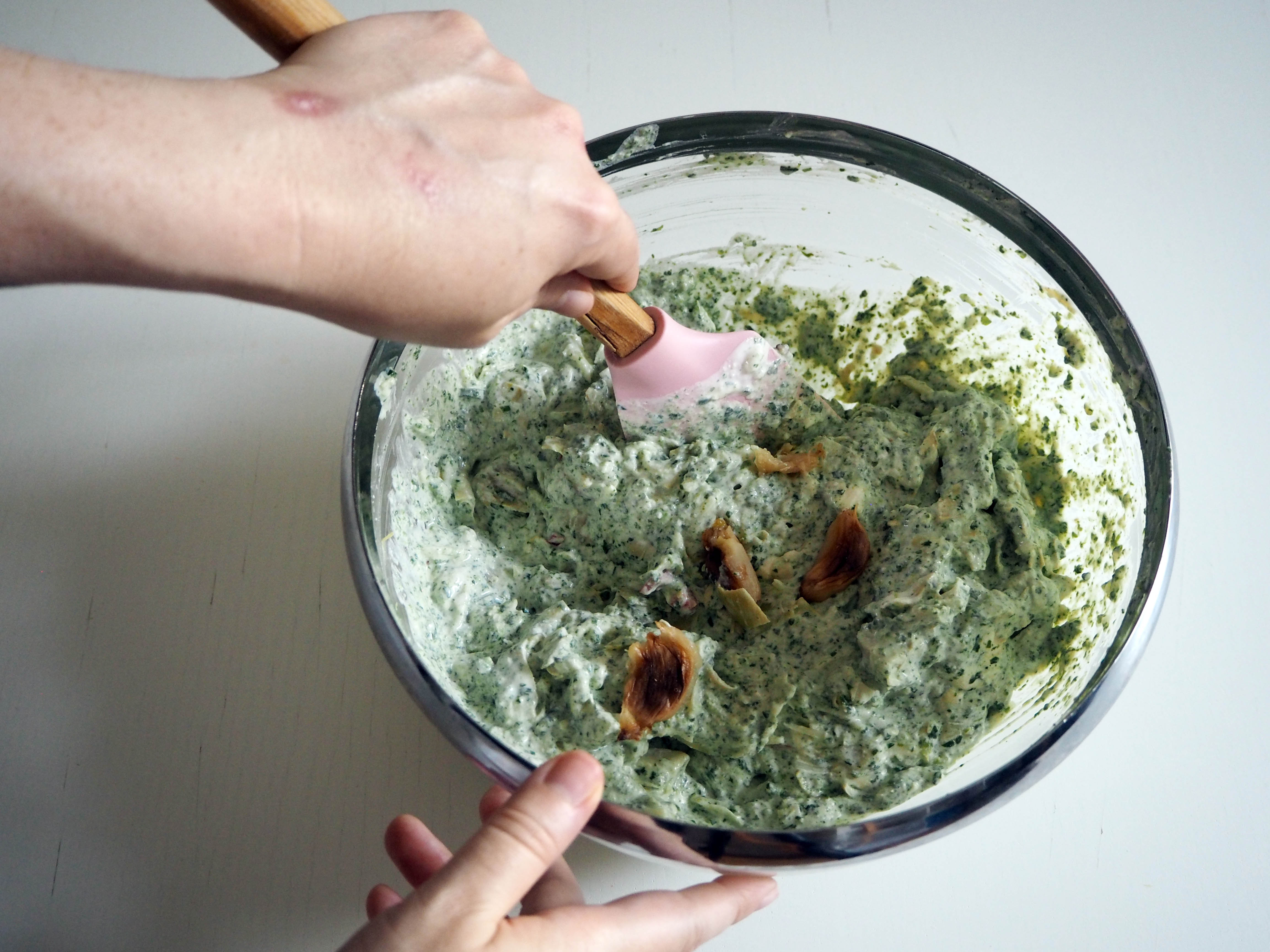 *You can use 150 gr. fresh spinach and finely chop it, or you can buy frozen finely chopped spinach, thaw and drain it – after thawing and draining, it should make 150 gr. so you must buy the packages accordingly. I used frozen spinach, and I got this amount from 2 packs of spinach each 200 gr.