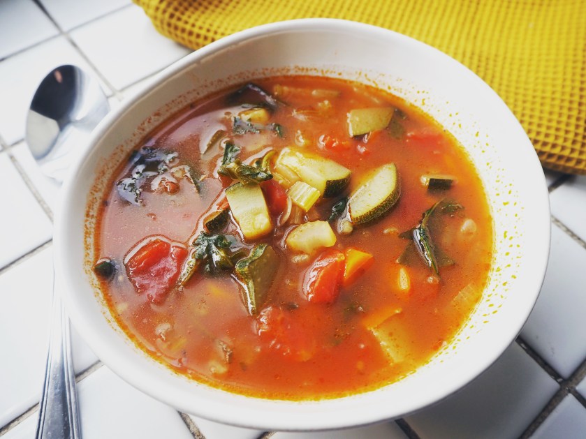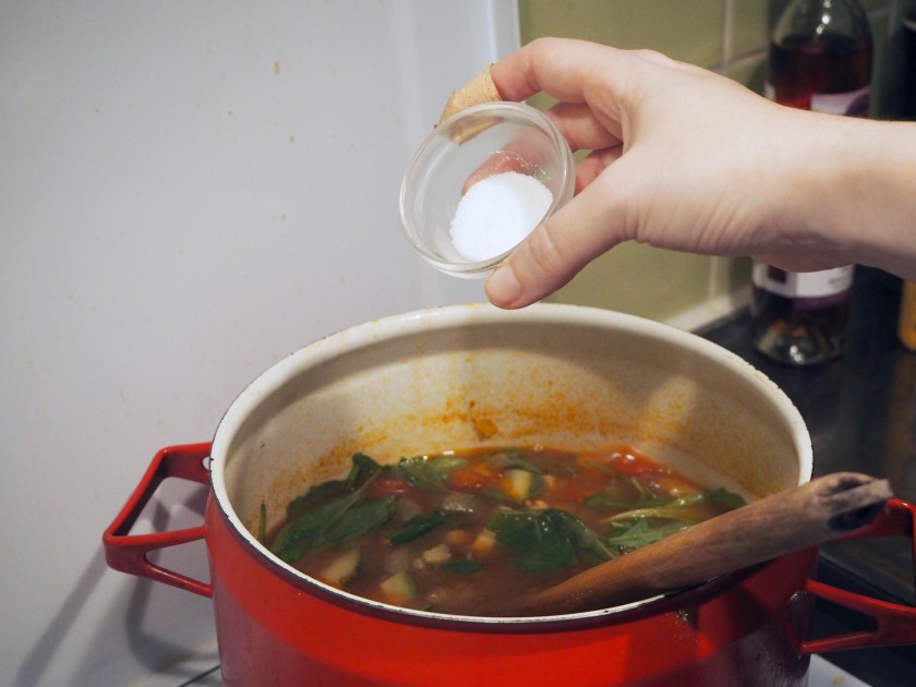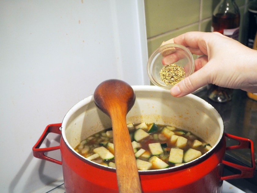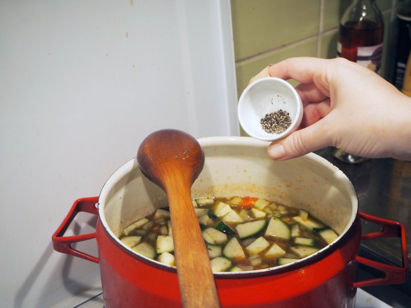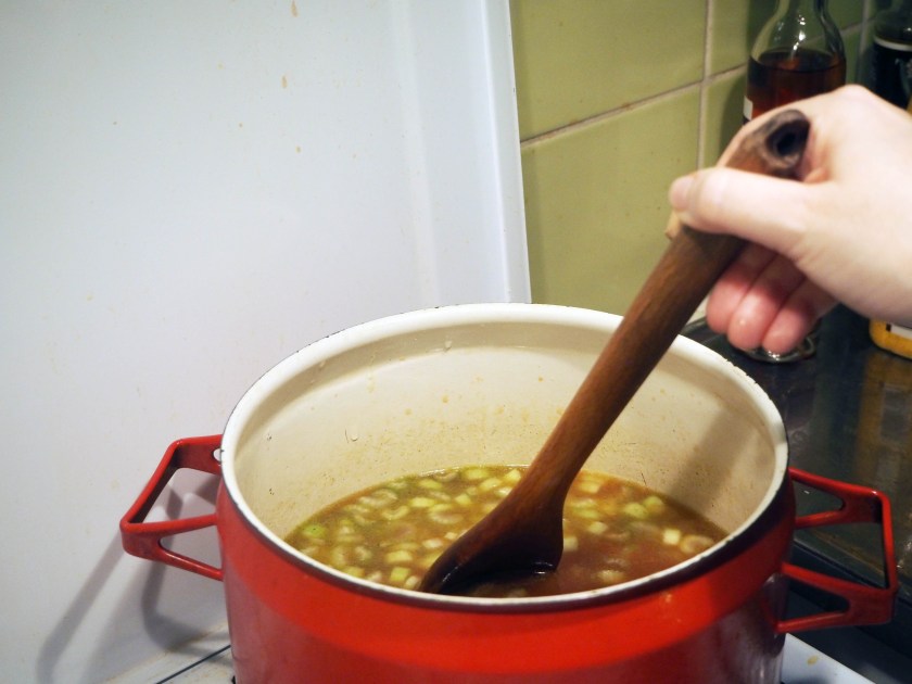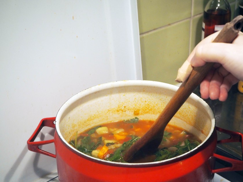 I almost stopped making the soup to quickly go to the market and buy beans instead. I was utterly devastated (dramatic much?). But I had opened the carton already so I continued with that. And it didn’t ruin the soup at all (well ok, I wasn’t really expecting chickpeas to ruin the soup, I just like beans more).