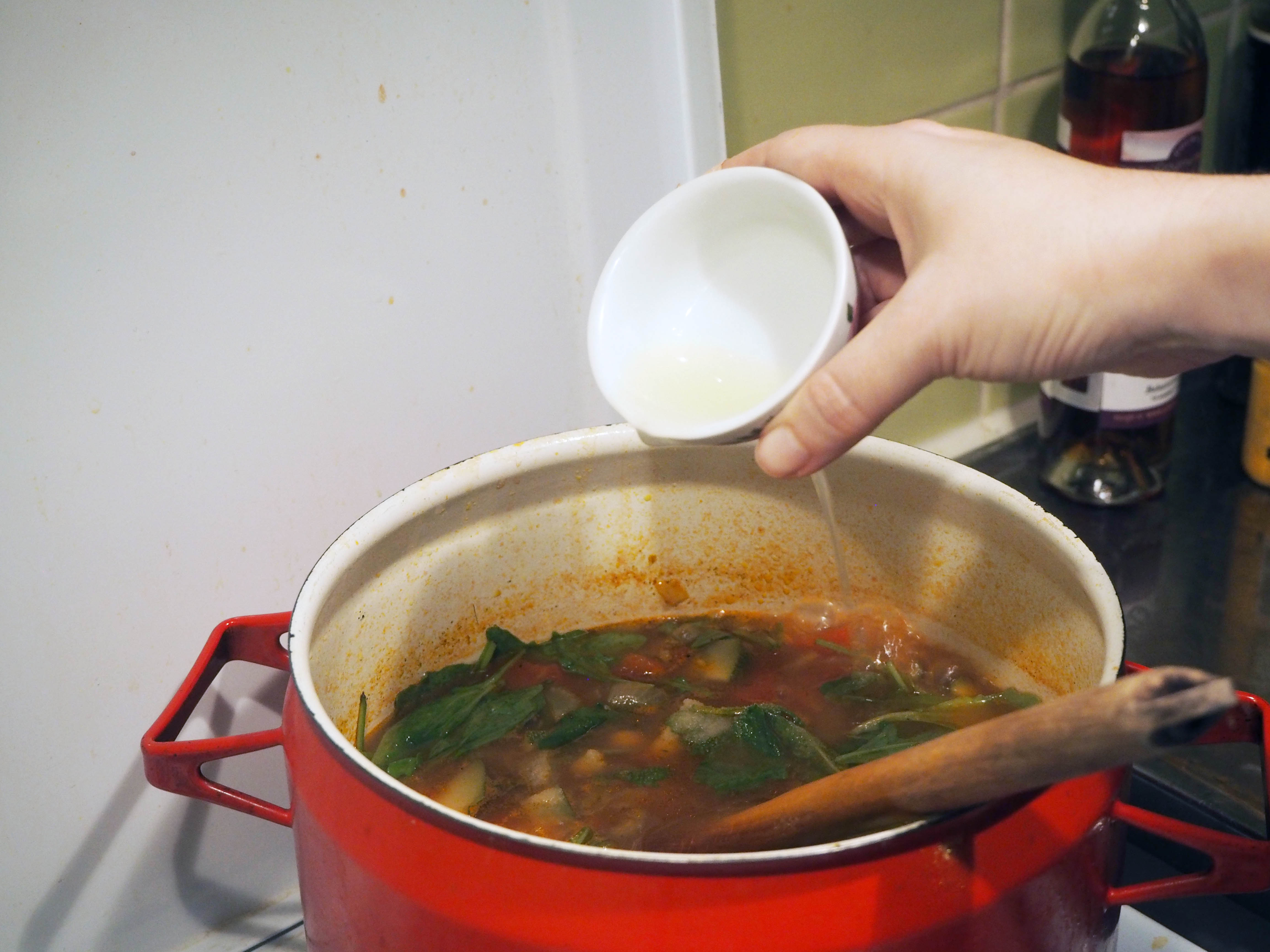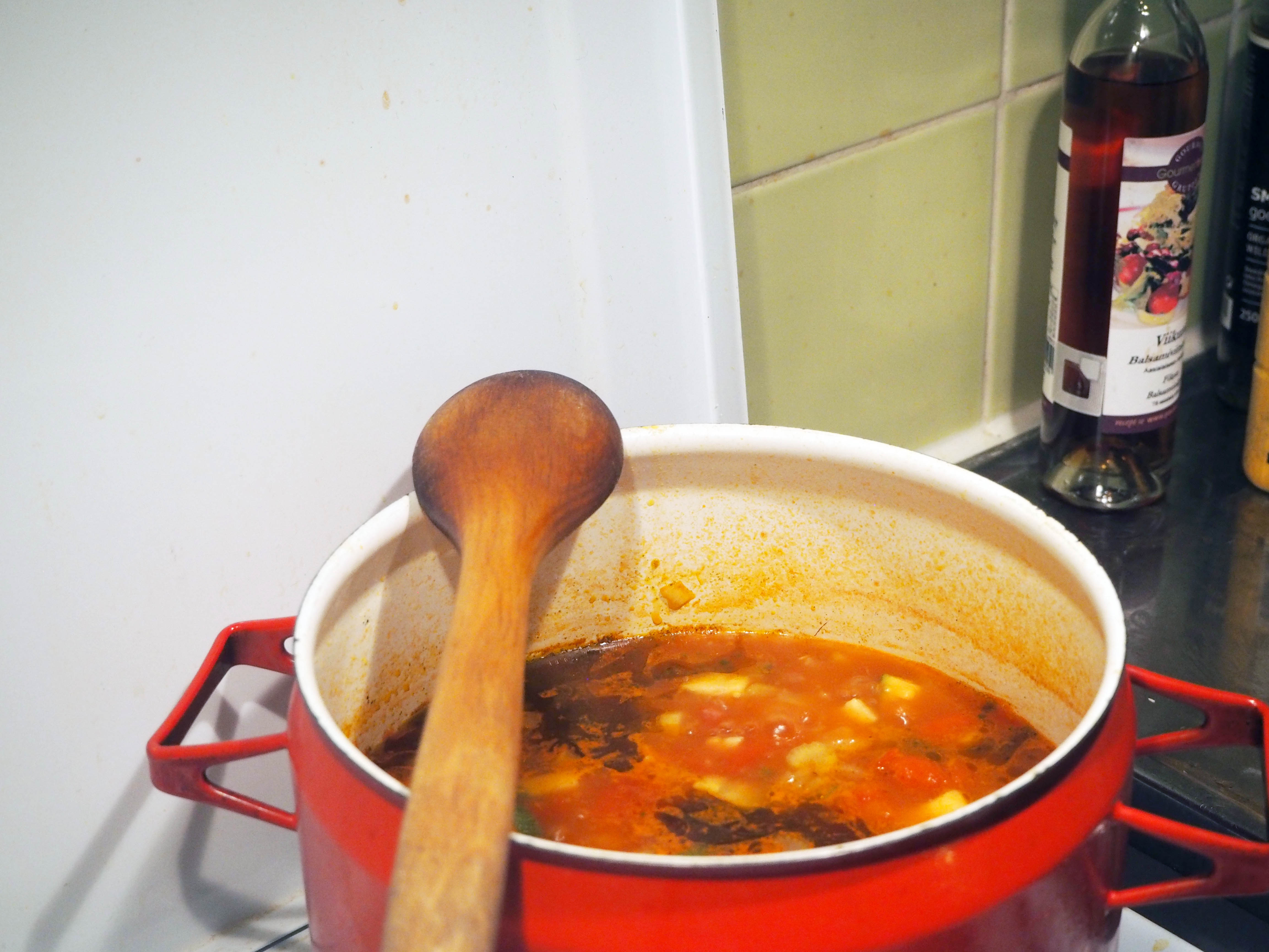 I almost stopped making the soup to quickly go to the market and buy beans instead. I was utterly devastated (dramatic much?). But I had opened the carton already so I continued with that. And it didn’t ruin the soup at all (well ok, I wasn’t really expecting chickpeas to ruin the soup, I just like beans more).