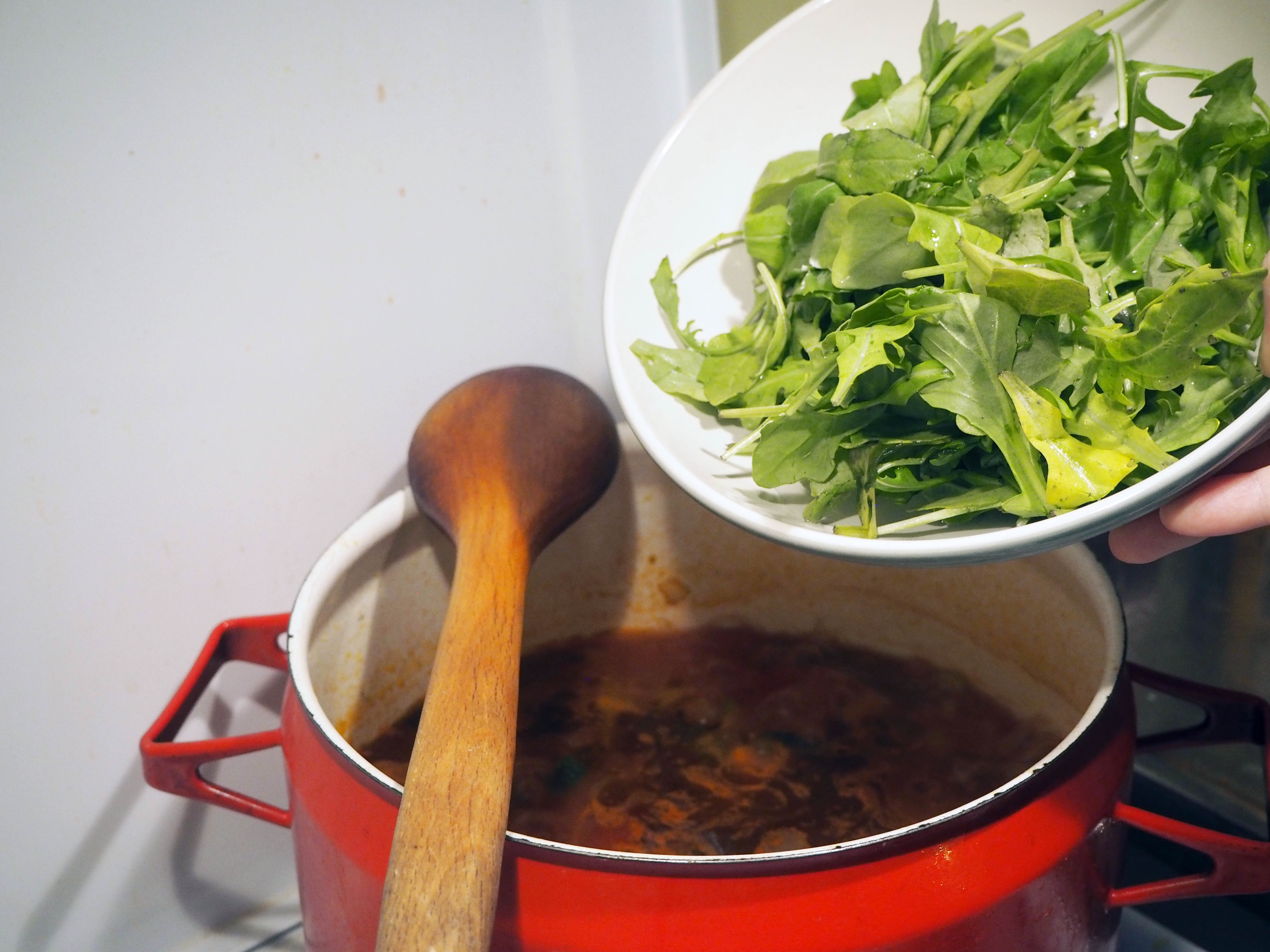 6. Add rucola, salt and lemon juice. Stir and cook for 5 more minutes. When the soup is done, turn down the heat and let it rest for at least 10 minutes to rest. Serve with fresh parsley or basil if you want. Enjoy!