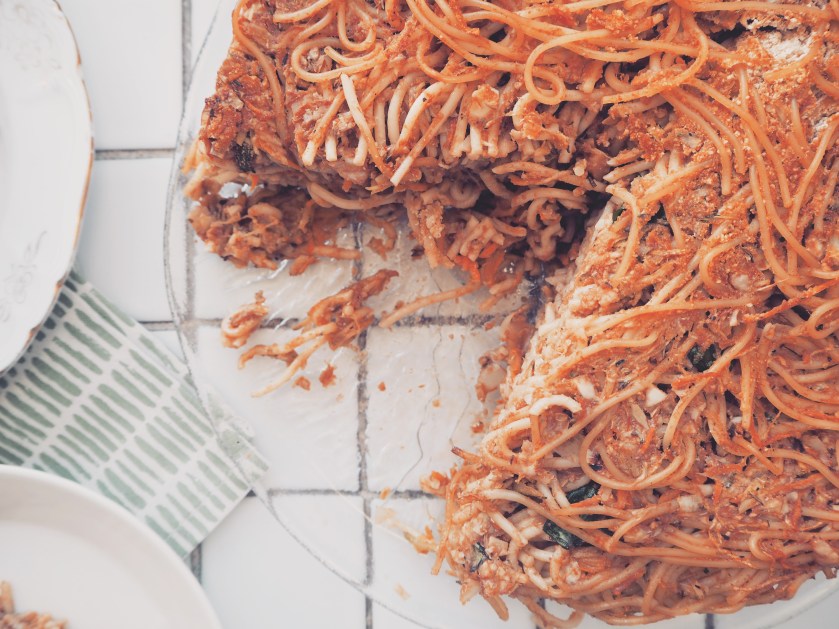 Vegan Monday: Baked Spaghetti With Vegetables And Herbs – More Like A Spaghetti Cake!