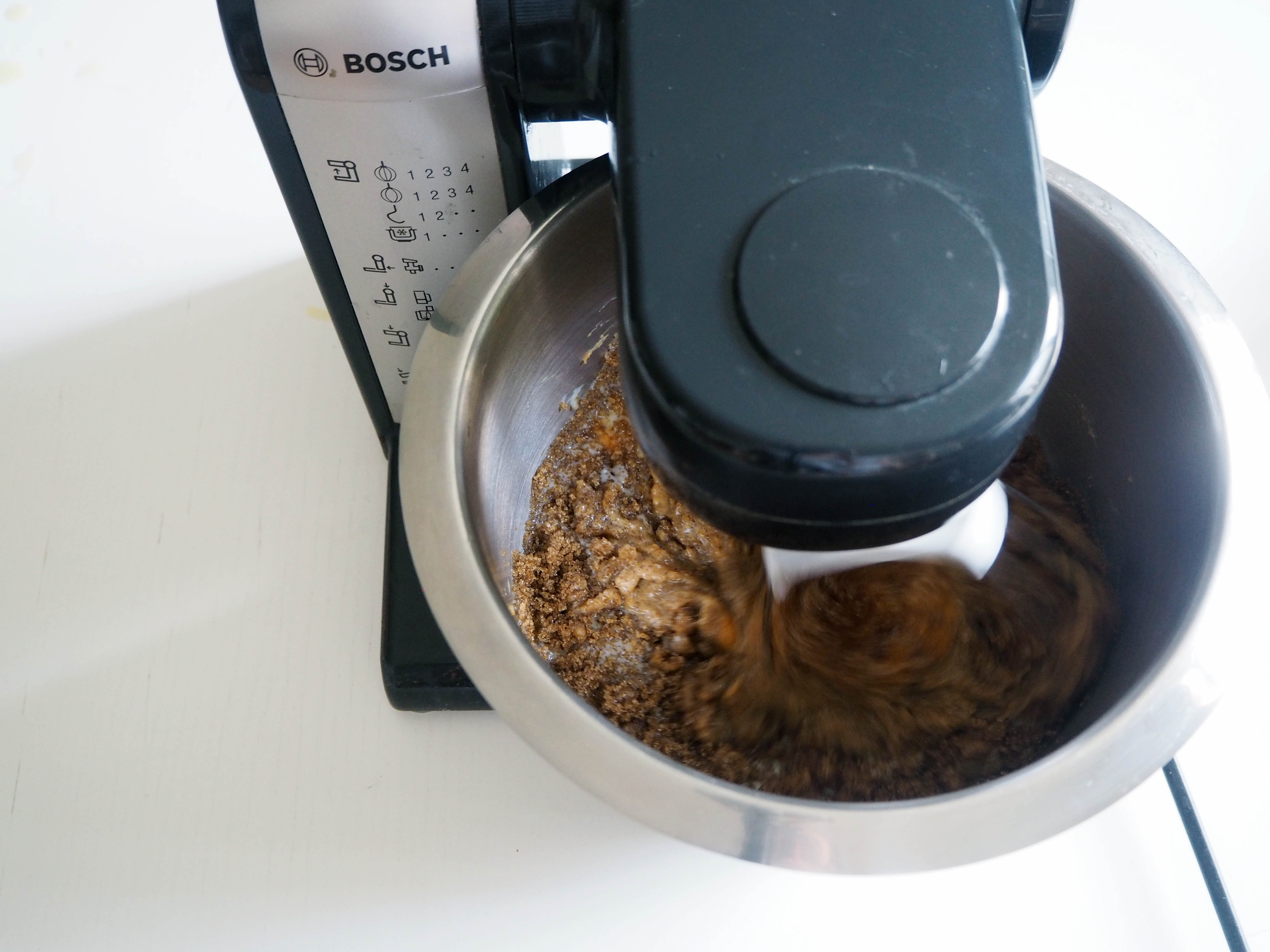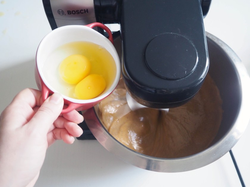 8. Add eggs and continue mixing. Scrape the sides and bottom if needed.