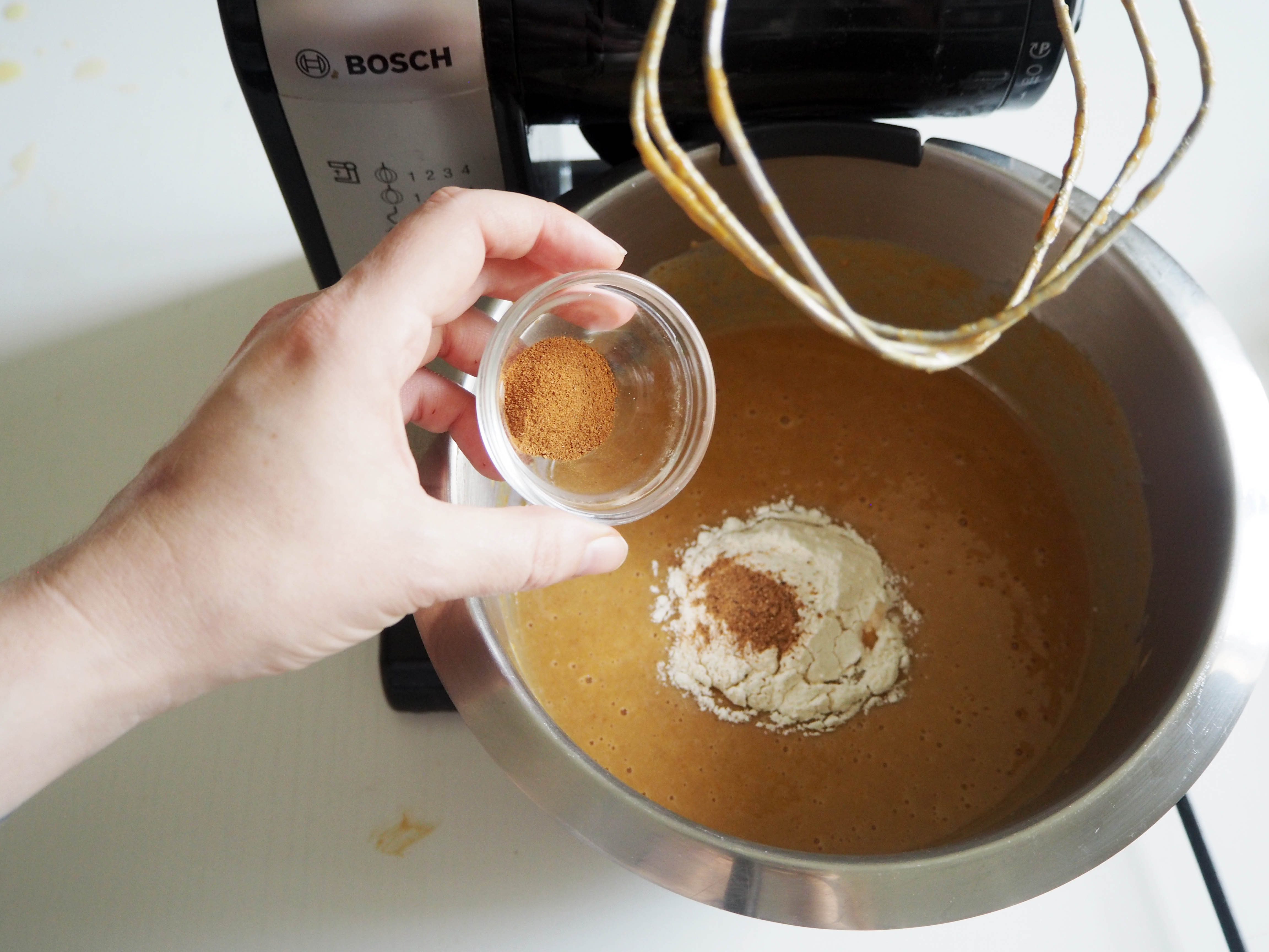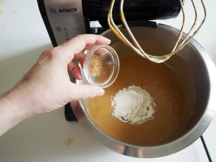 9. Add flour and spices and mix in medium high speed until it is a smooth mixture.