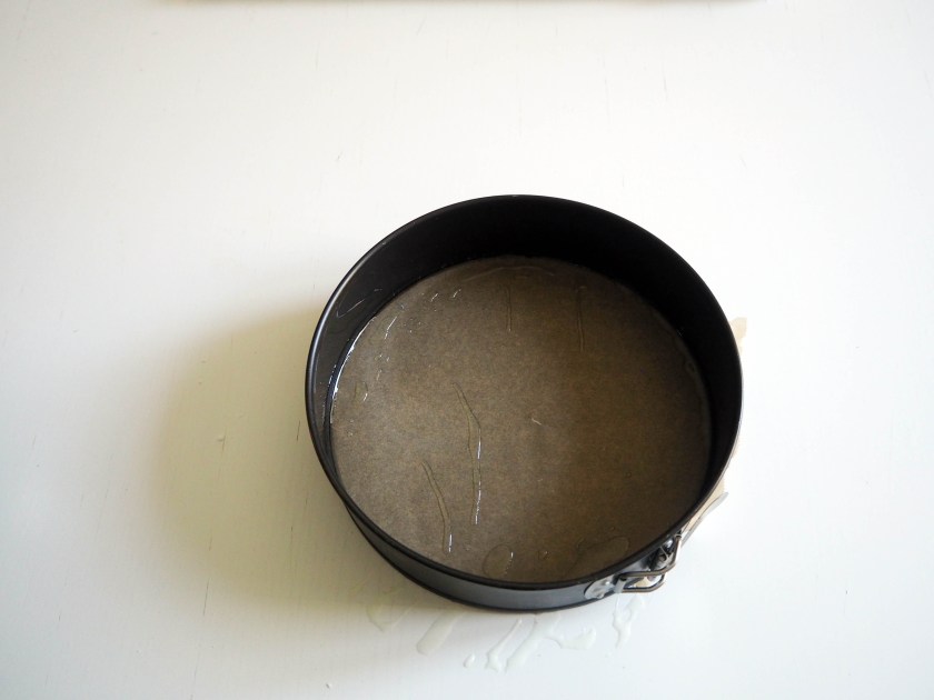 1. Preheat the oven to 180C. Grease a 24cm springform pan and cover the base with a baking paper.