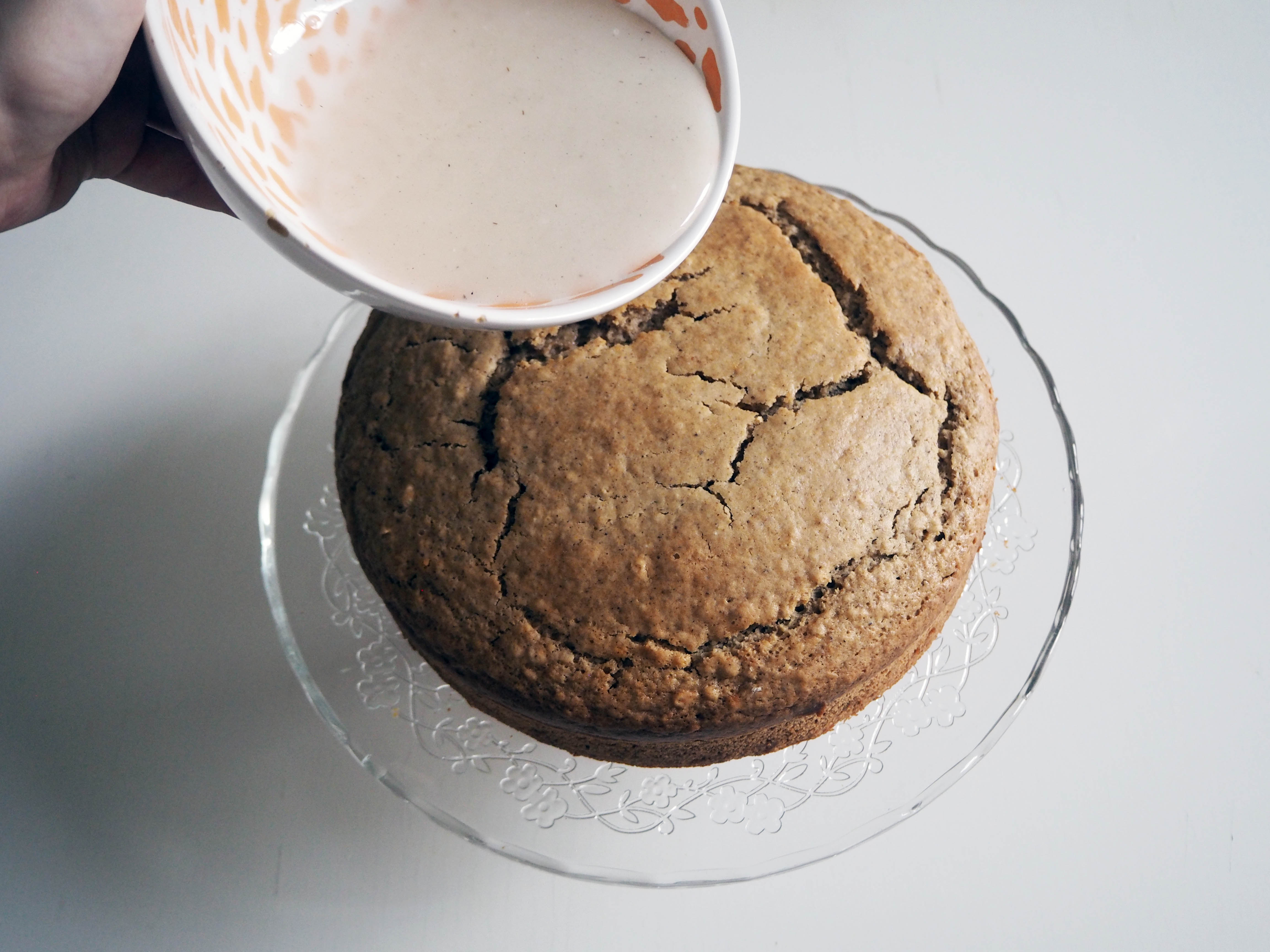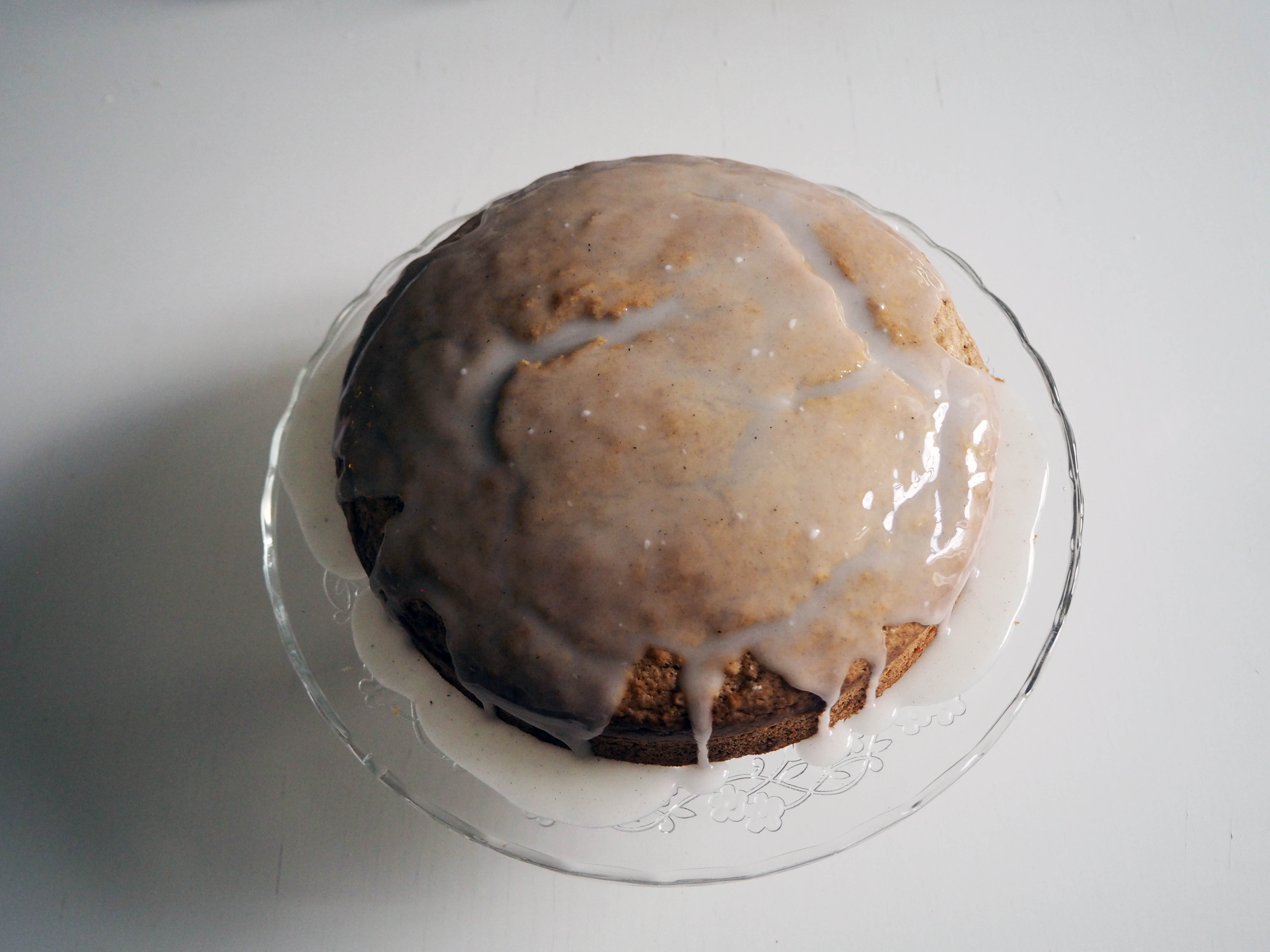8. Pour the glaze over the cake and serve (this makes quite a lot of glaze, so if you want you can also use half measurements of ingredients to make a smaller amount of glaze). Enjoy the cake with coffee, tea or better yet some sweet wine, why not?!