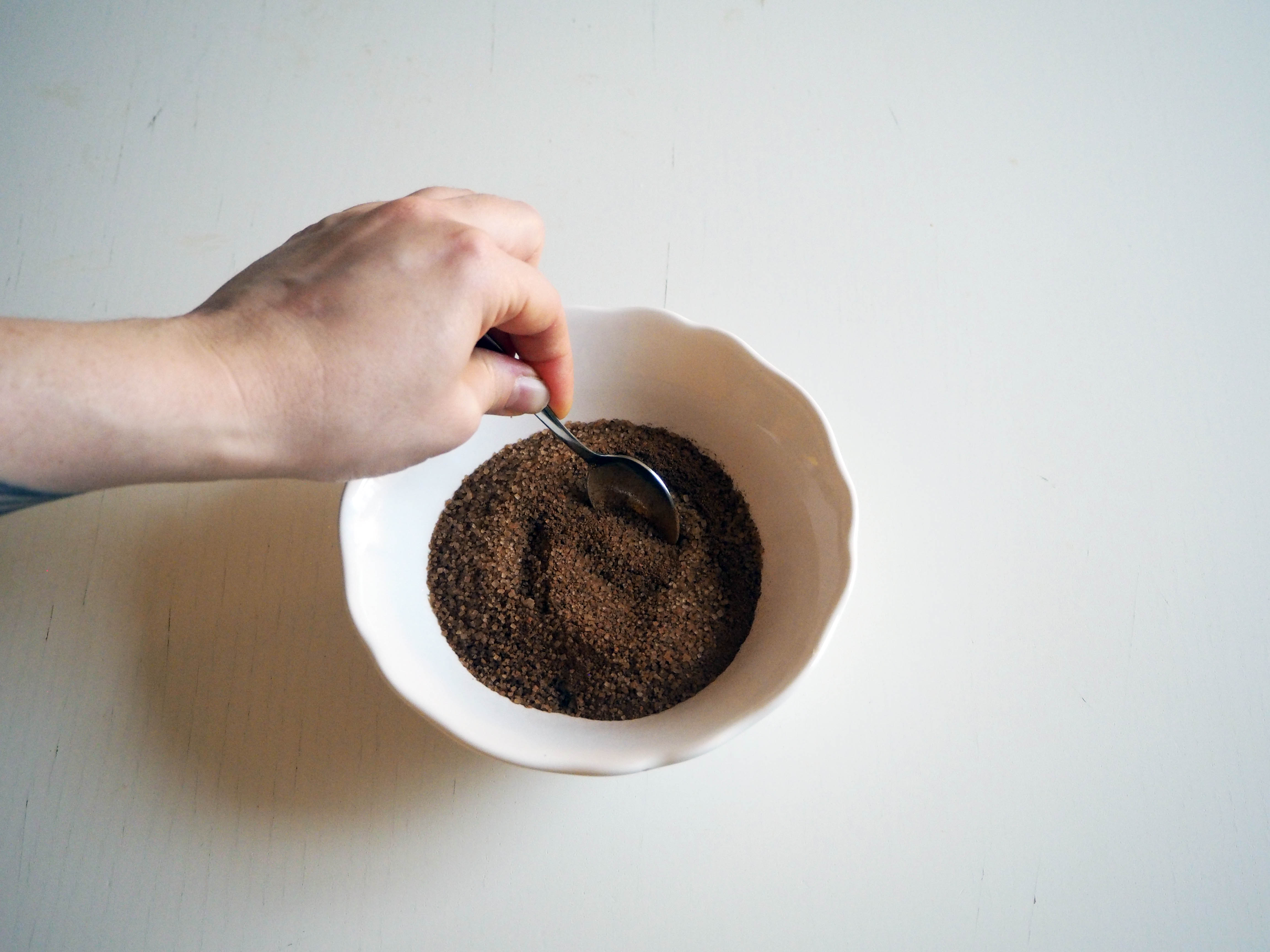 1 dl + 4 tsp (or 1/2 cup) brown sugar