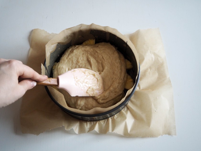 A few weeks ago, a very dear friend of mine had a operation. She was given pineapples in the hospital to eat and then we also bought pineapples for her when we took her back home. At that moment I realised that I never did anything with pineapples before. Not only that, but I don’t really eat pineapples at all, I barely remember them when I pass by the fruit section in the market. So I immediately started to work on it and this cake came out as the result.