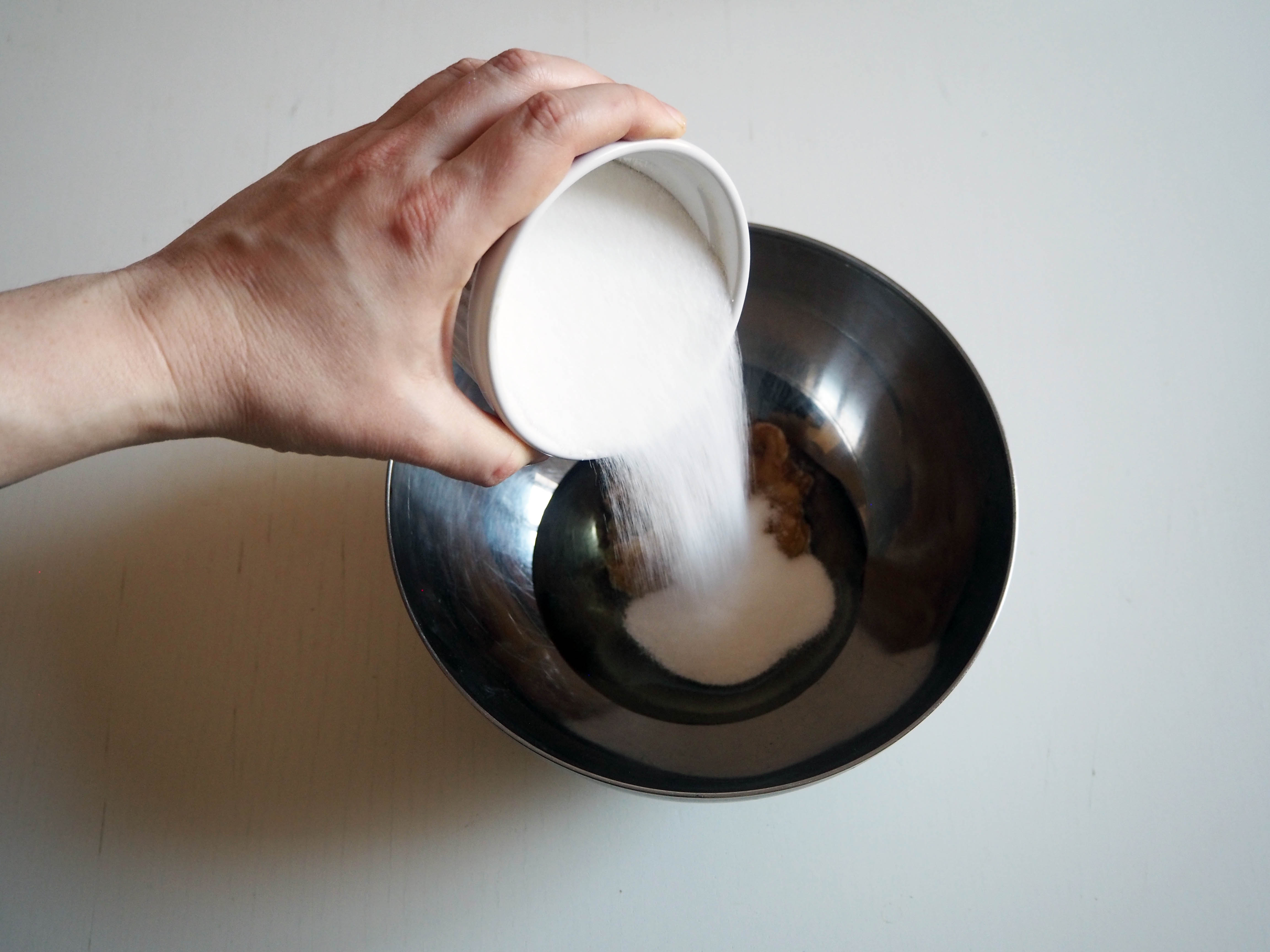 1 dl + 5 tsp (or 1/2 cup) granulated white sugar