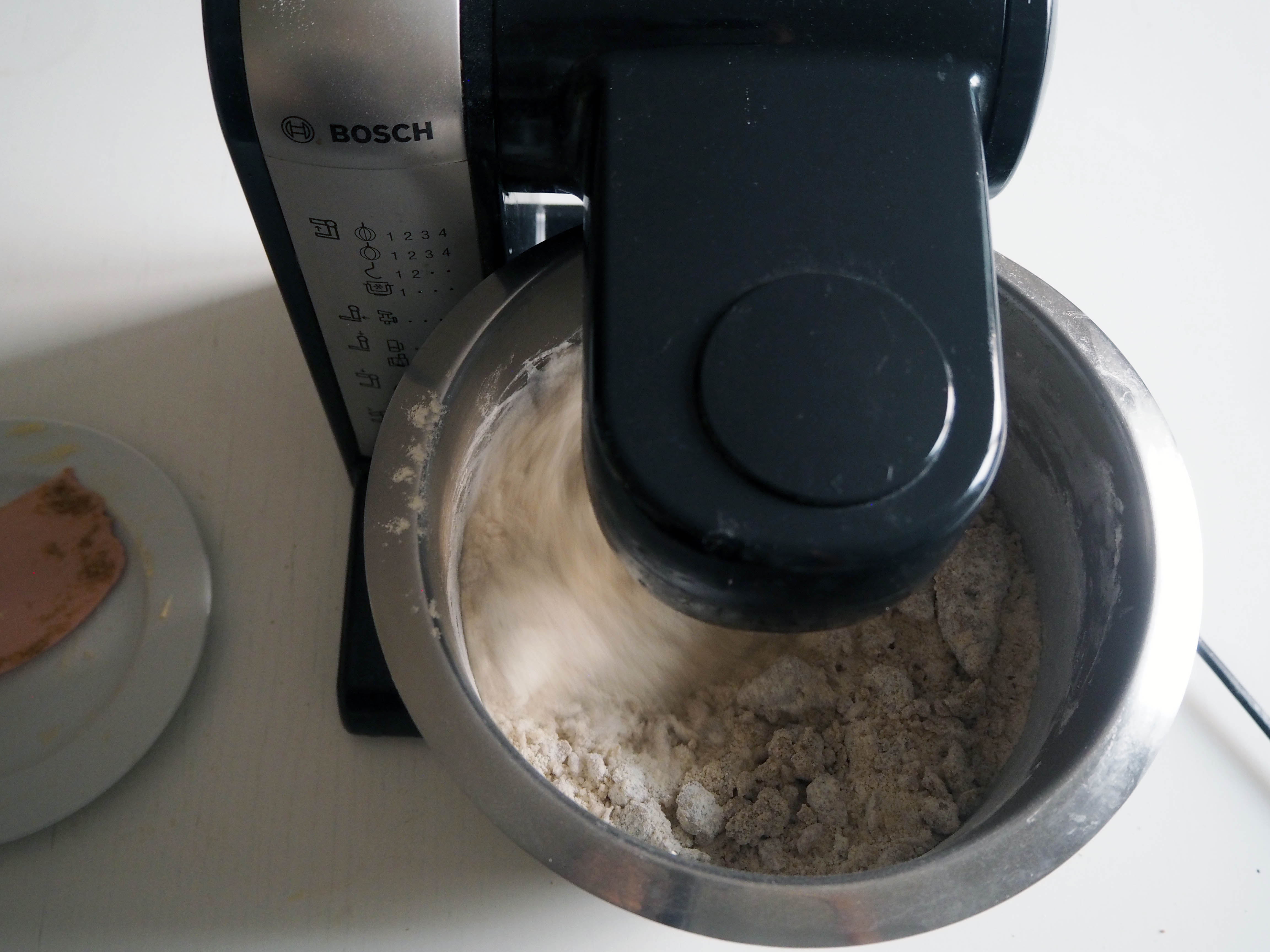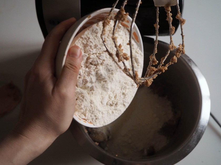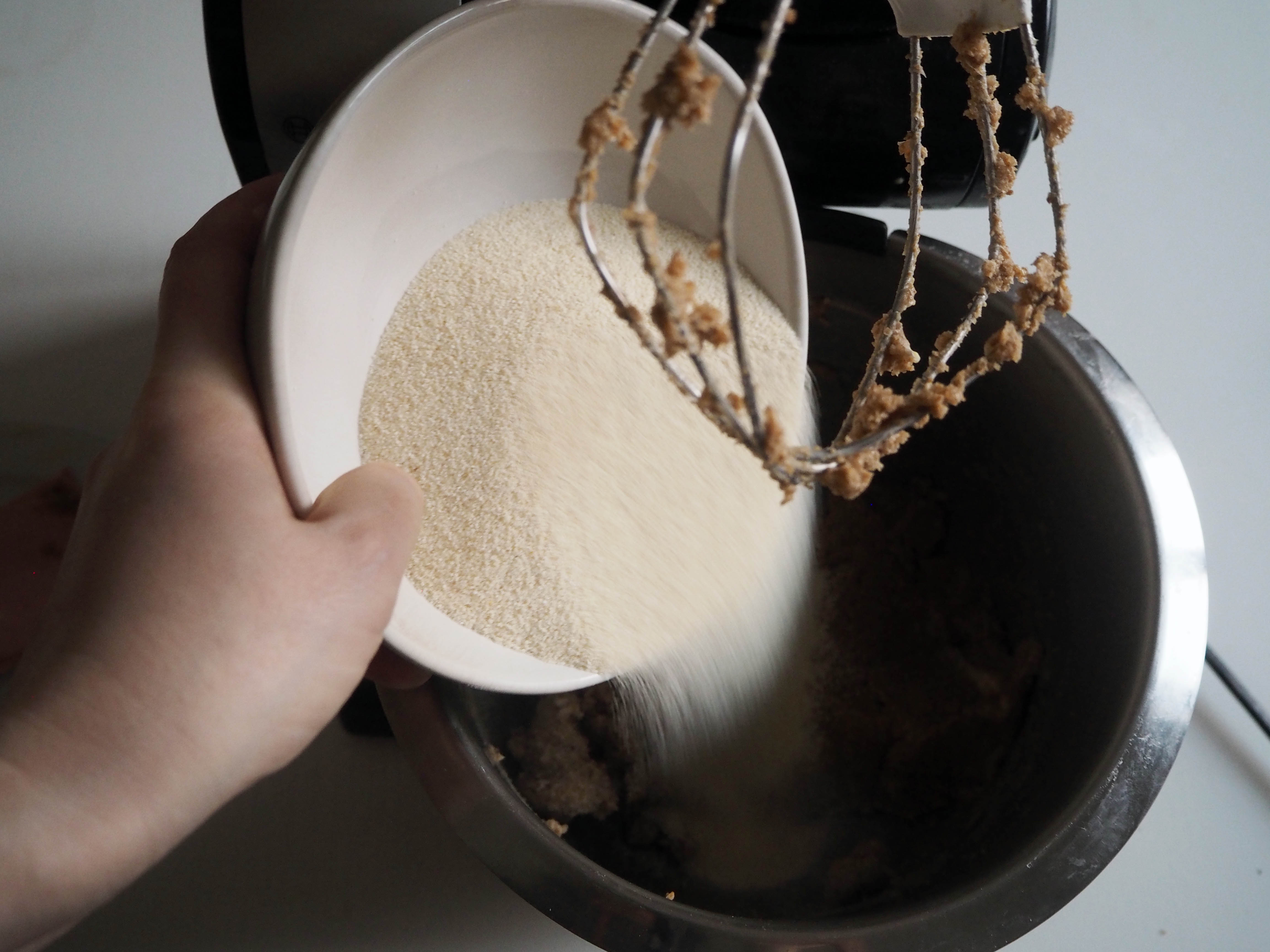 3. Add semolina and flour and continue beating in medium speed until incorporated.