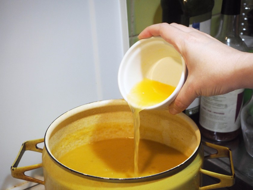 Well, the sunshine is slowly fading these days. It’s still relatively warm, and not extremely hot like just about 10 days earlier. So, we may start to have a bit of hearty soup. But to keep the spirits high, we can make it sunshine yellow!