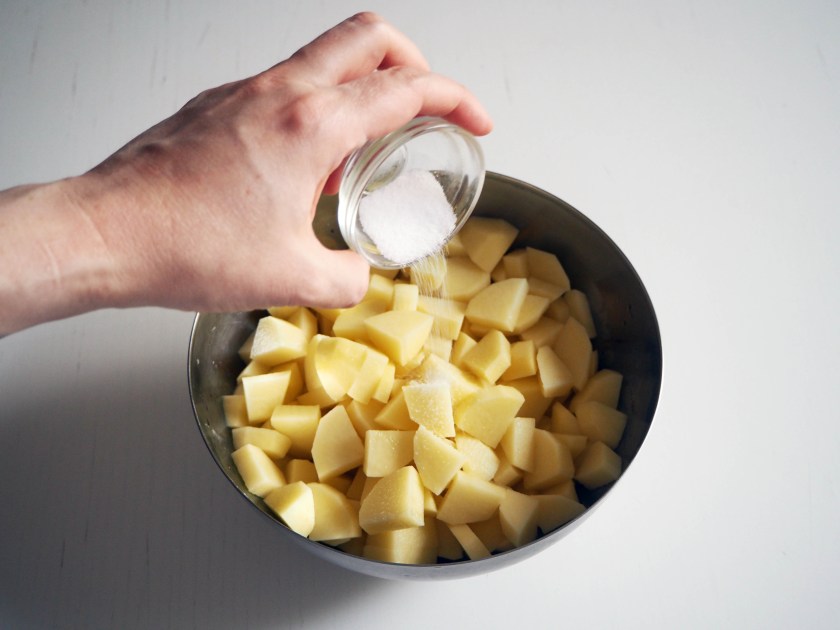 In this version I put just a little bit of onion to add a bit more taste. Even a small onion gives quite strong taste so if you don’t want that, you can perfectly skip it and make it with potatoes only. Enjoy!