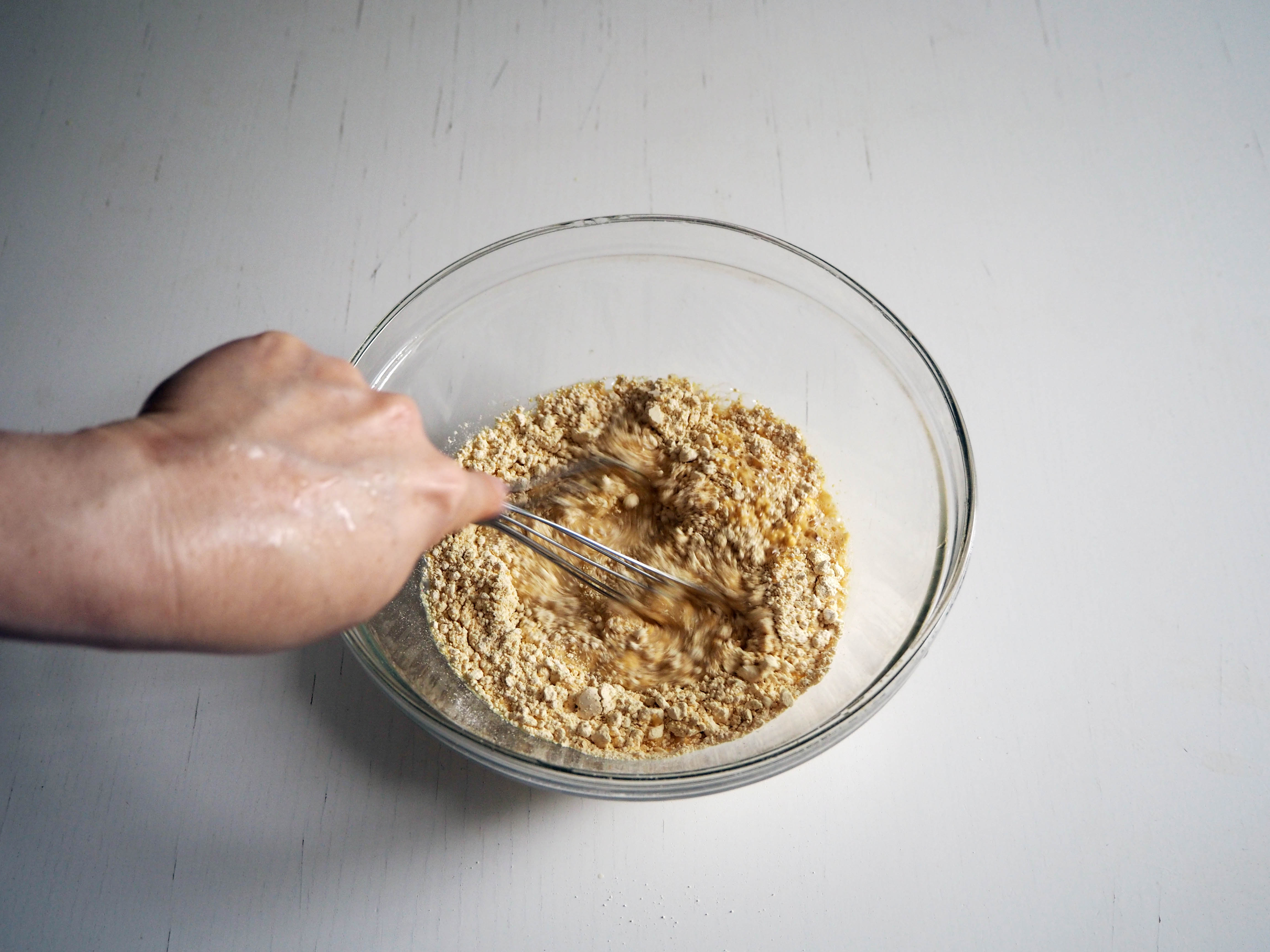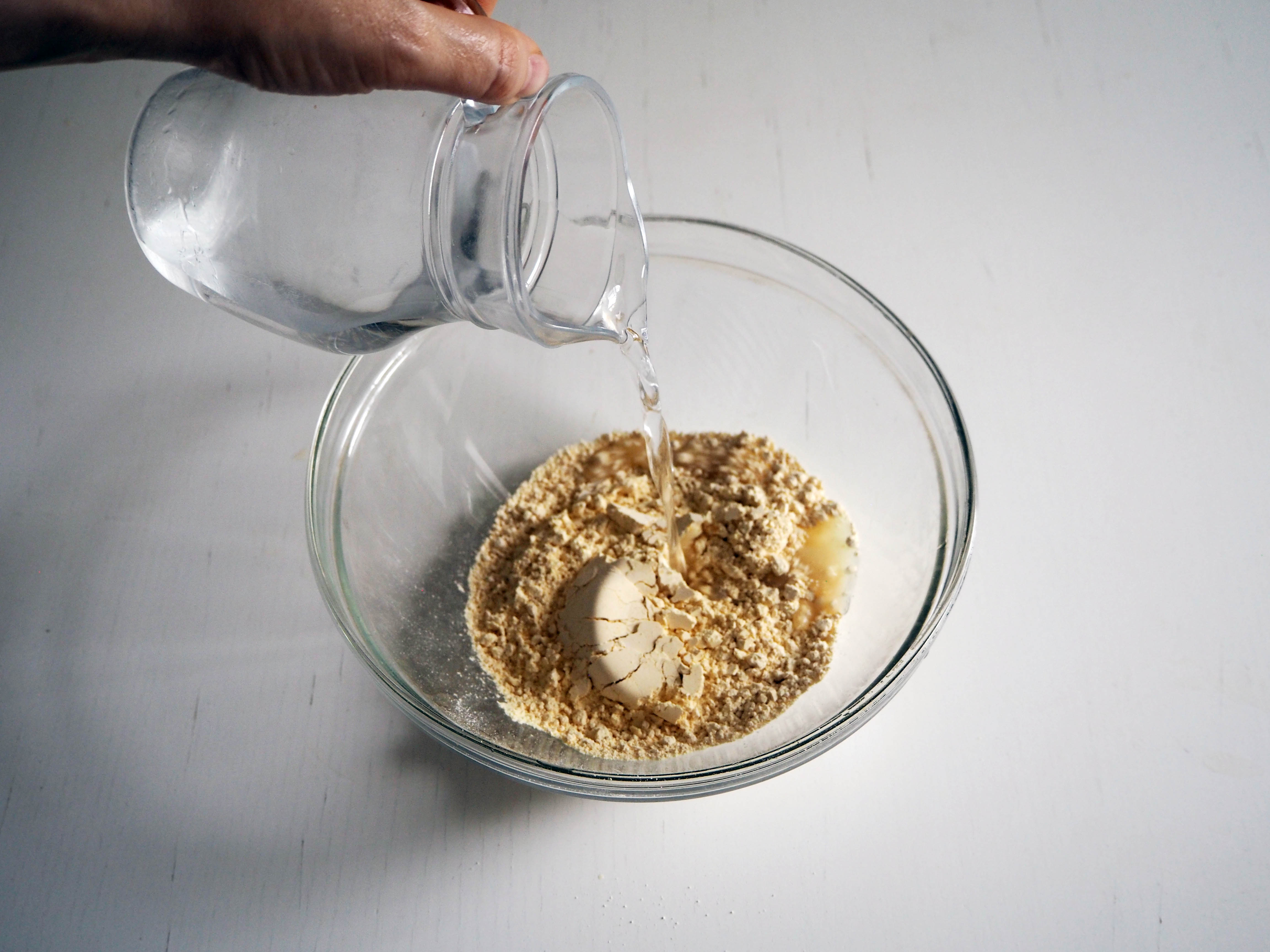 2. In a medium bowl, put chickpea flour and add water. Whisk well.