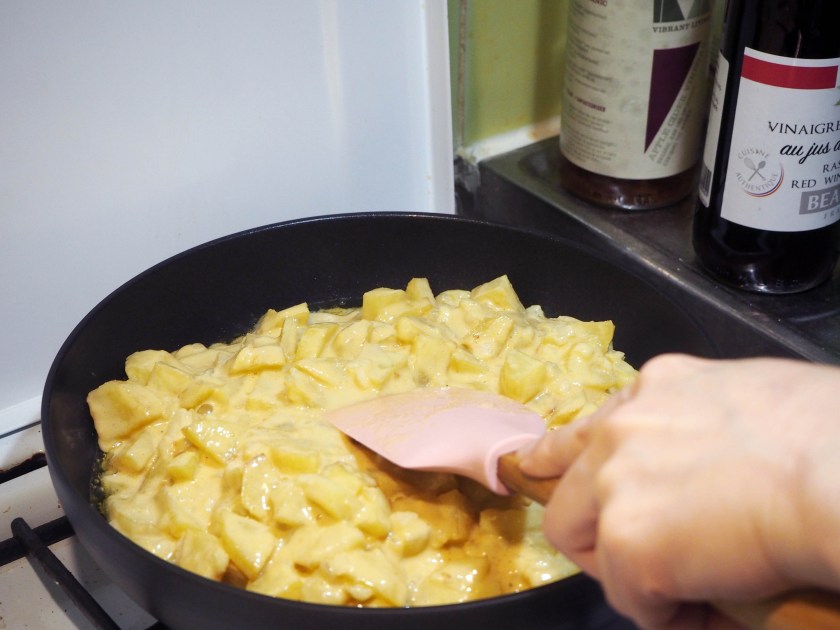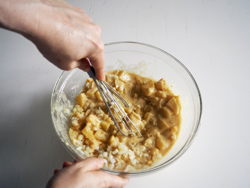 I remember, about 6 years ago, I was working and doing my master’s studies at the same time and one evening I was particularly tired – body and brain. So I set out to make a quick potato omelette for dinner and then go to bed early, but I ended up making an omelette without eggs – because I had simply forgotten to put the eggs!!! Well, this recipe is an omelette without eggs made deliberately so, and it still has the taste of eggs. Let’s get into it.