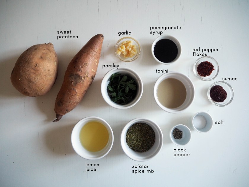 So, I used quotation mark in the title because baba ganoush, as you may already know, is traditionally made with eggplants. I made a little twist to it, and used sweet potatoes this time.