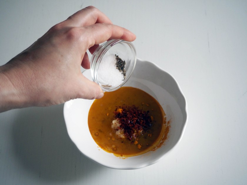 1. Preheat the oven to 200C. In a small bowl, mix all the ingredients except for cauliflower.