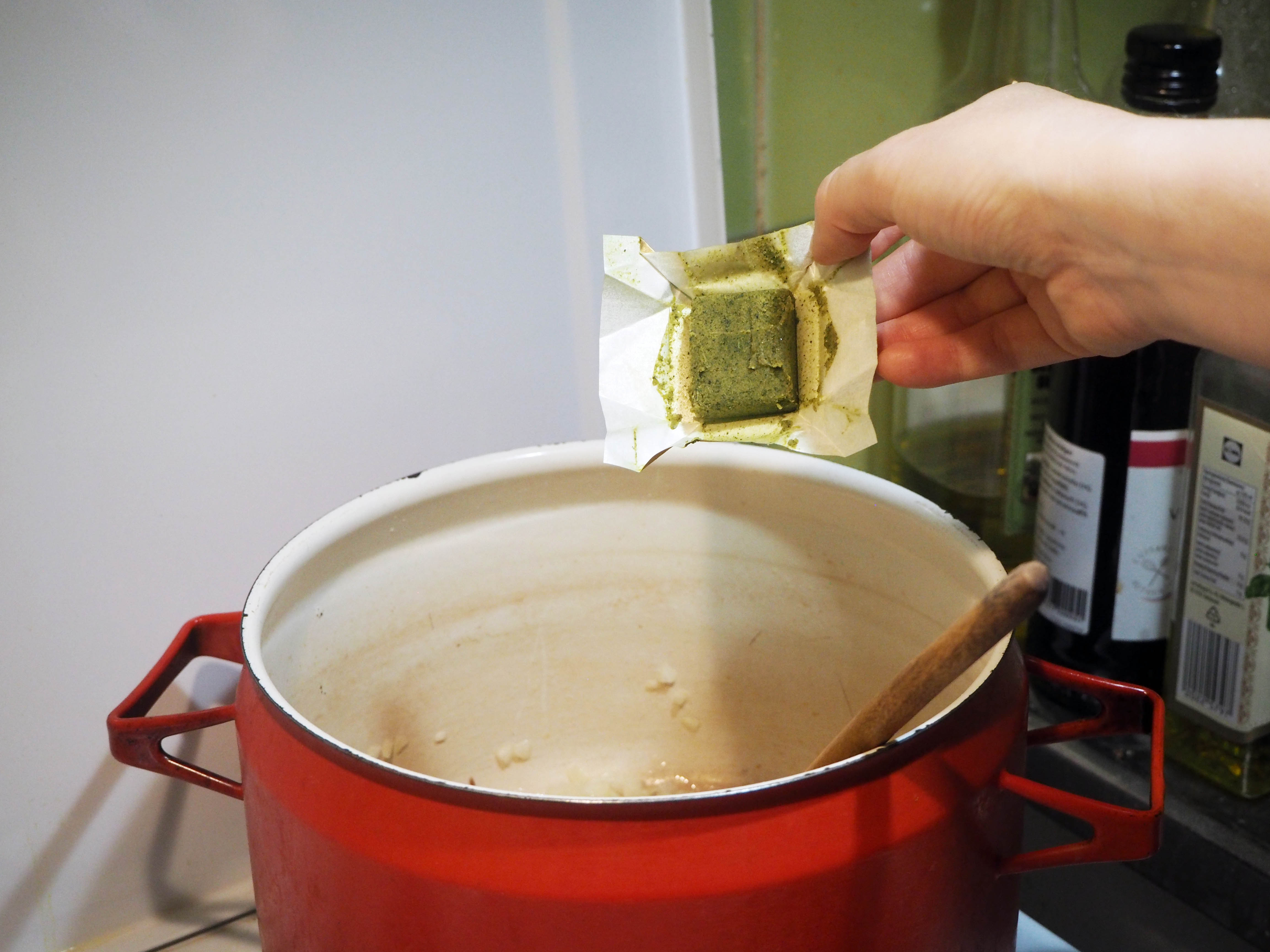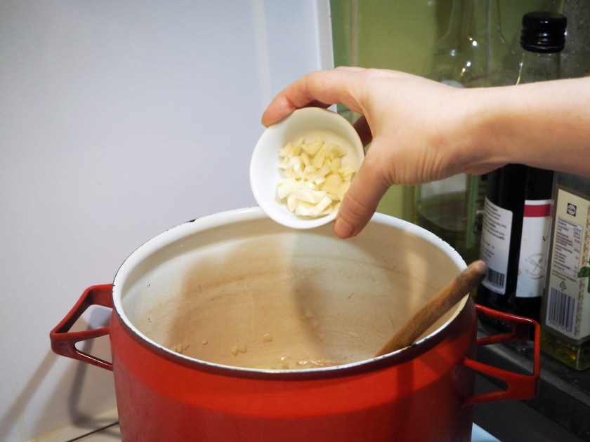 2. Add garlic, cumin seeds and vegetable stock cube if using, and continue to sauté for about 1-1.5 minutes more.