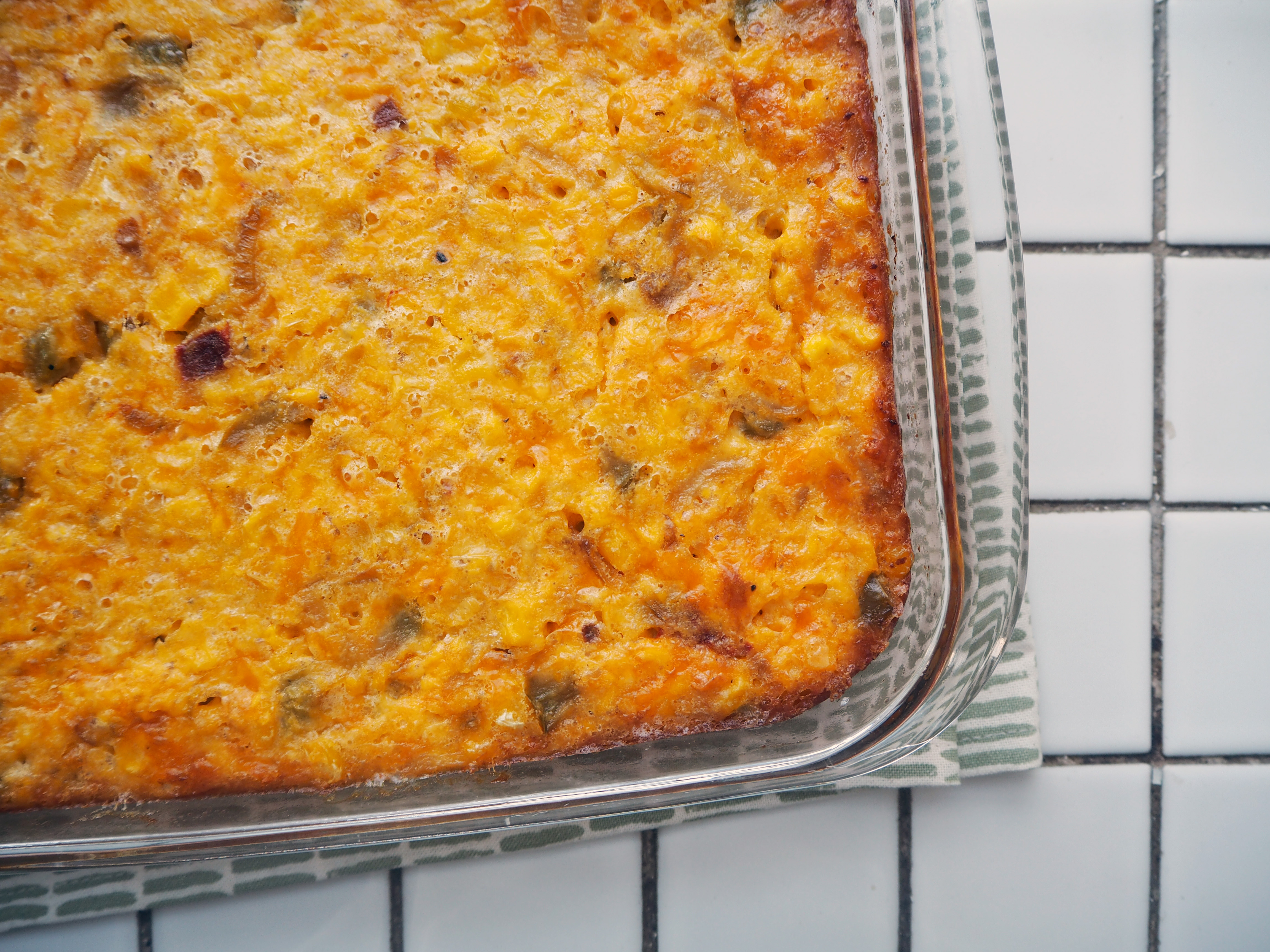 The original recipe of this casserole is by Martha Stewart. However, I made some changes to suit my own taste, I also decreased the amount of butter. My version is not very hot because the amount of chipotle is quite small, but you can add more if you want yours hotter. The casserole is most delicious when it’s fresh and warm, but leftovers are not that bad either. Enjoy!