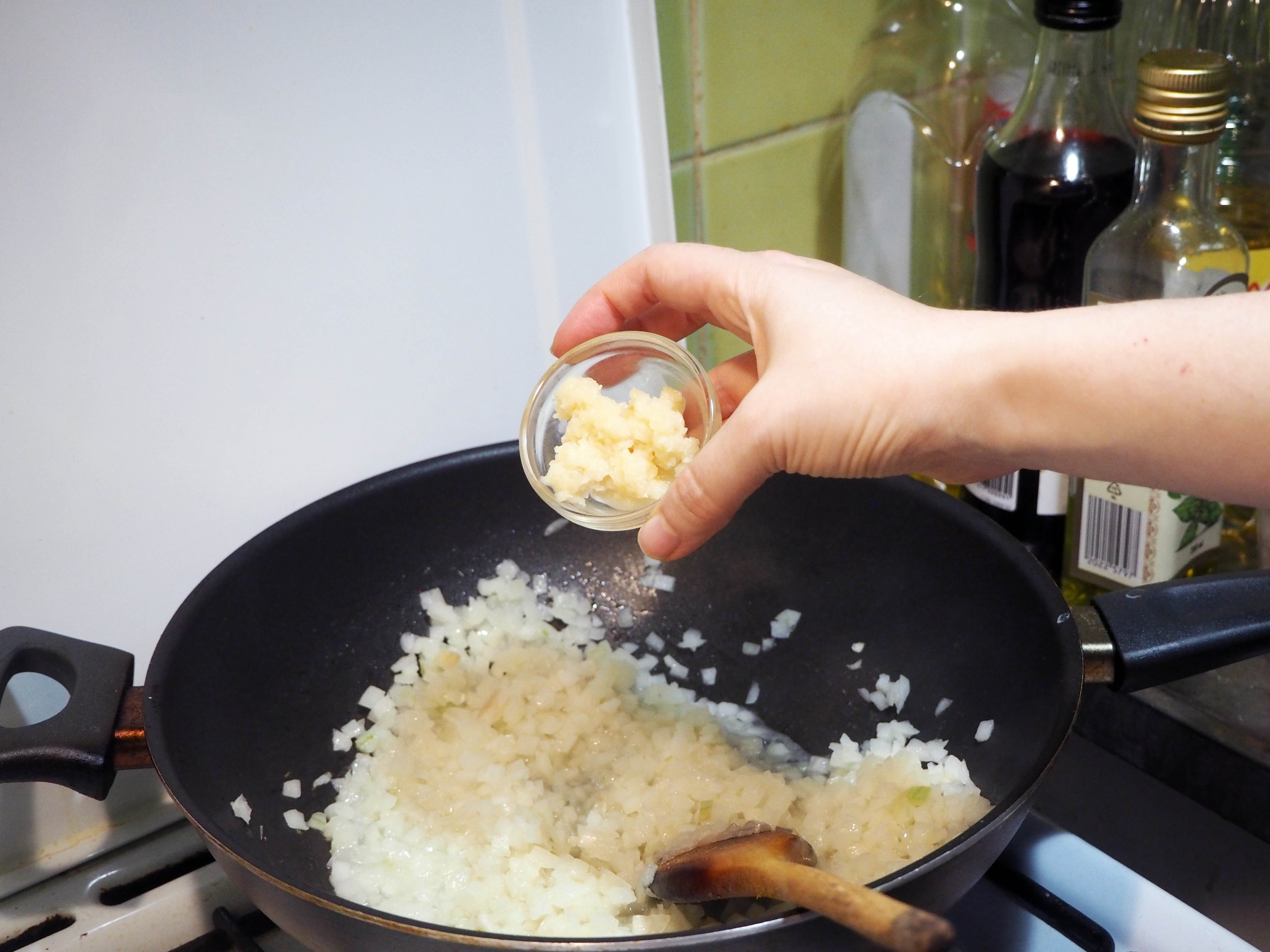 5. Add mashed garlic and continue to cook for about 1-2 minutes.