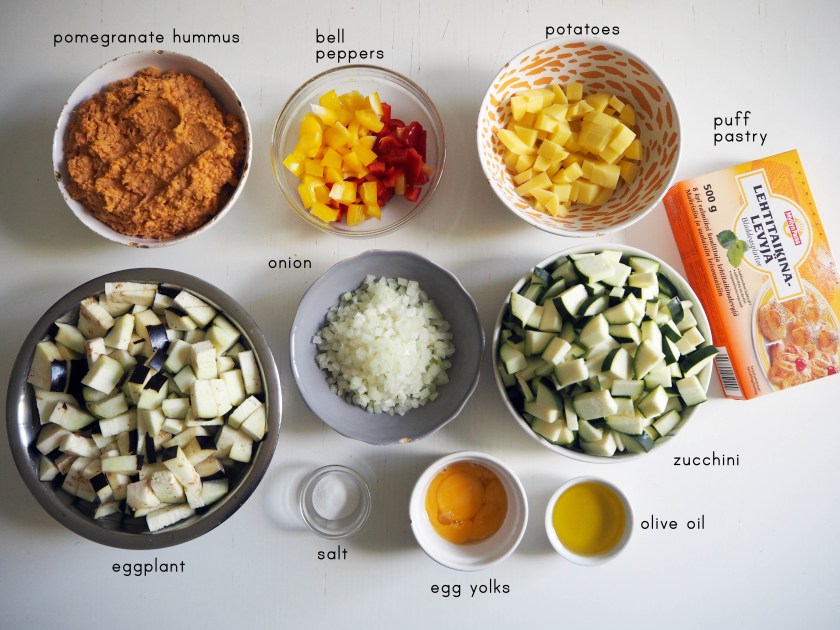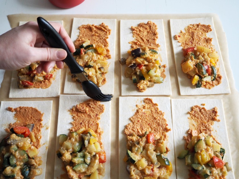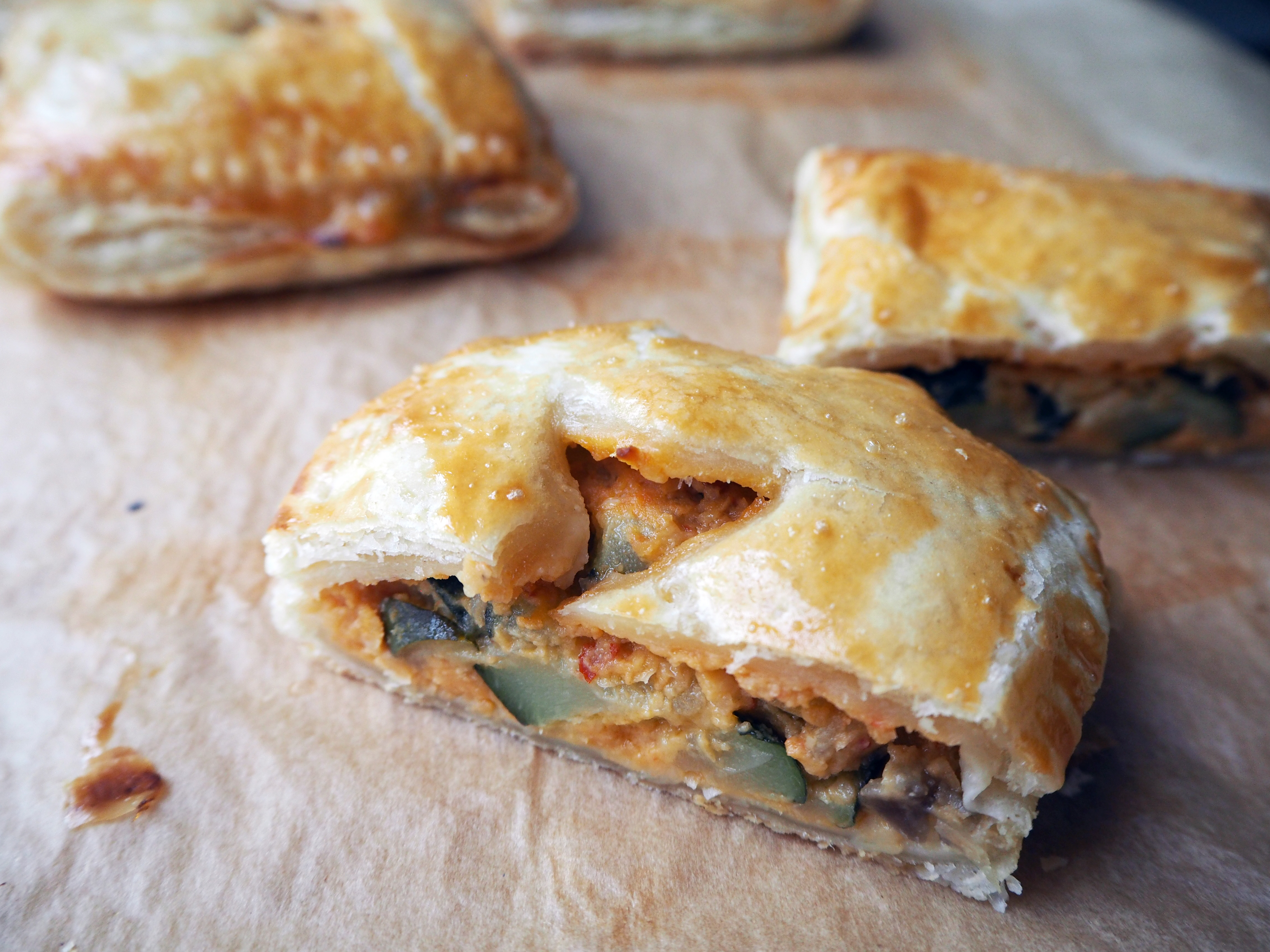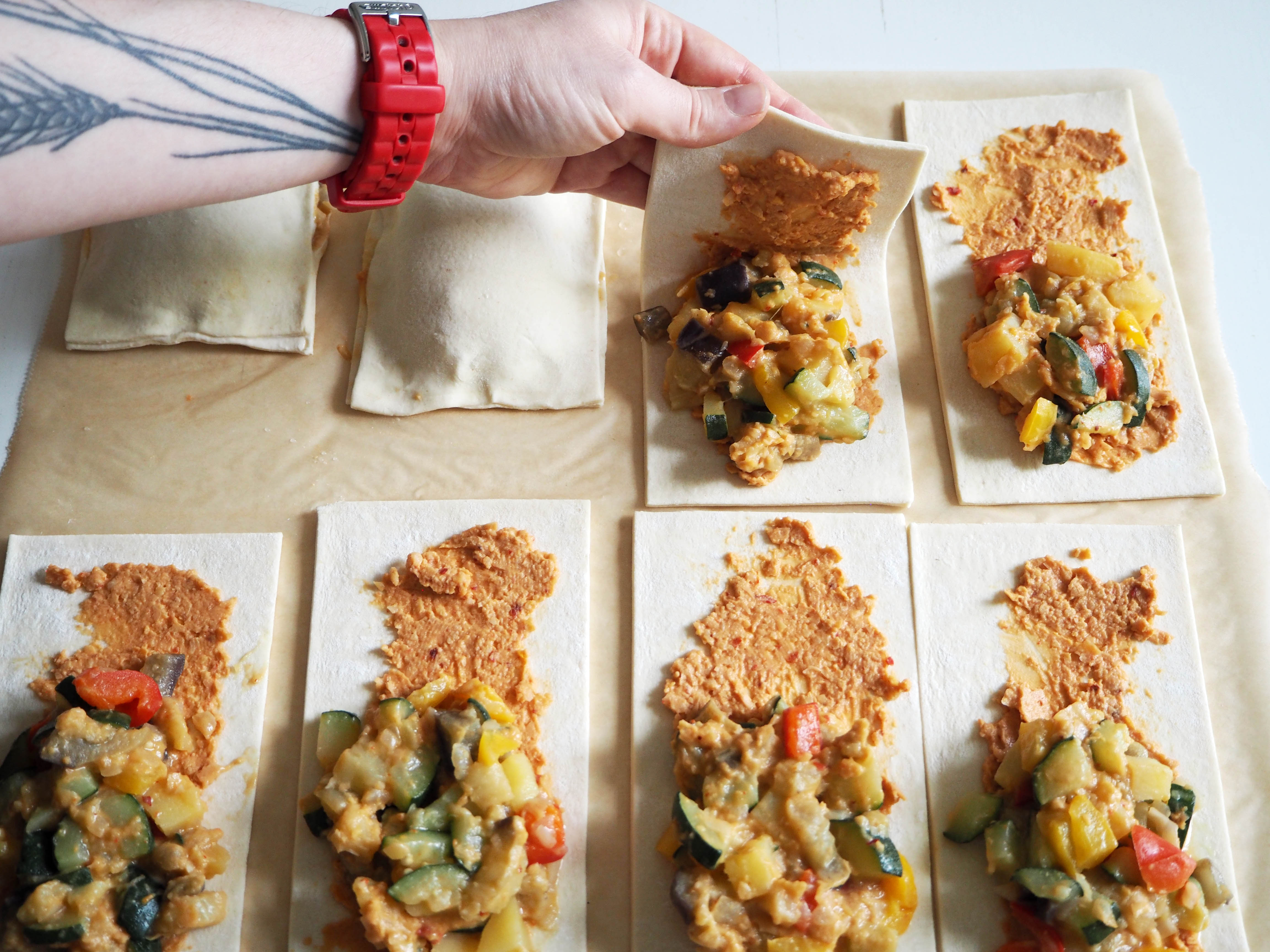 Puff Parcels With Vegetable And Pomegranate Hummus Filling