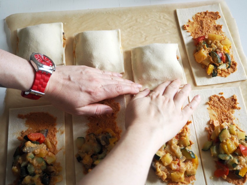 At the end of making these parcels, you might be left with a bit of extra cooked veggies. You can store them in the fridge in a tightly closed container and next morning make a vegetable frittata with them for example. Or you can warm them and serve with fresh omelette. Enjoy your cute little parcels!
