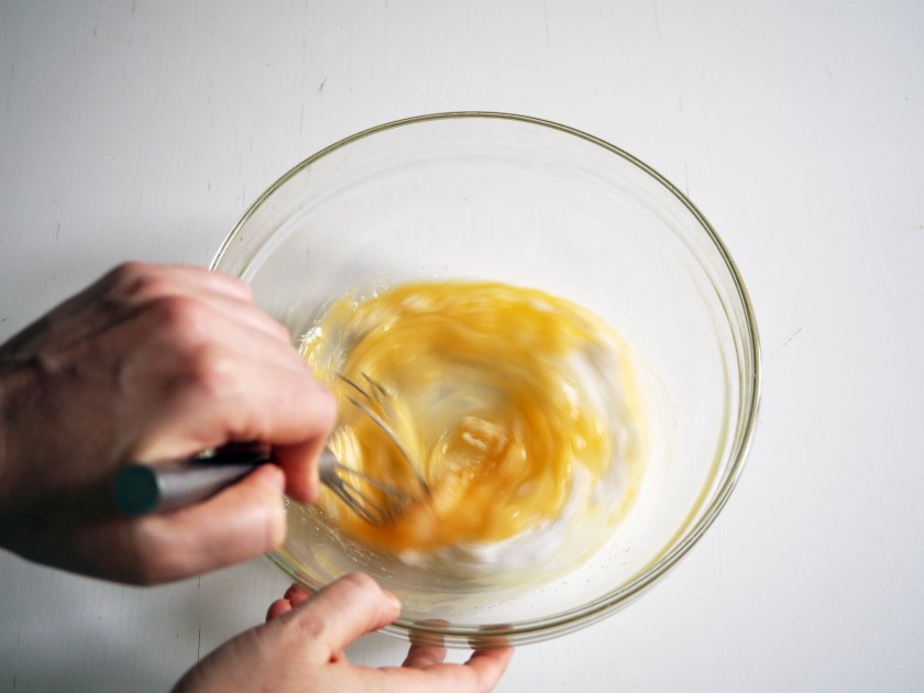 1. Put first 3 ingredients on the list in a bowl and roughly whisk.