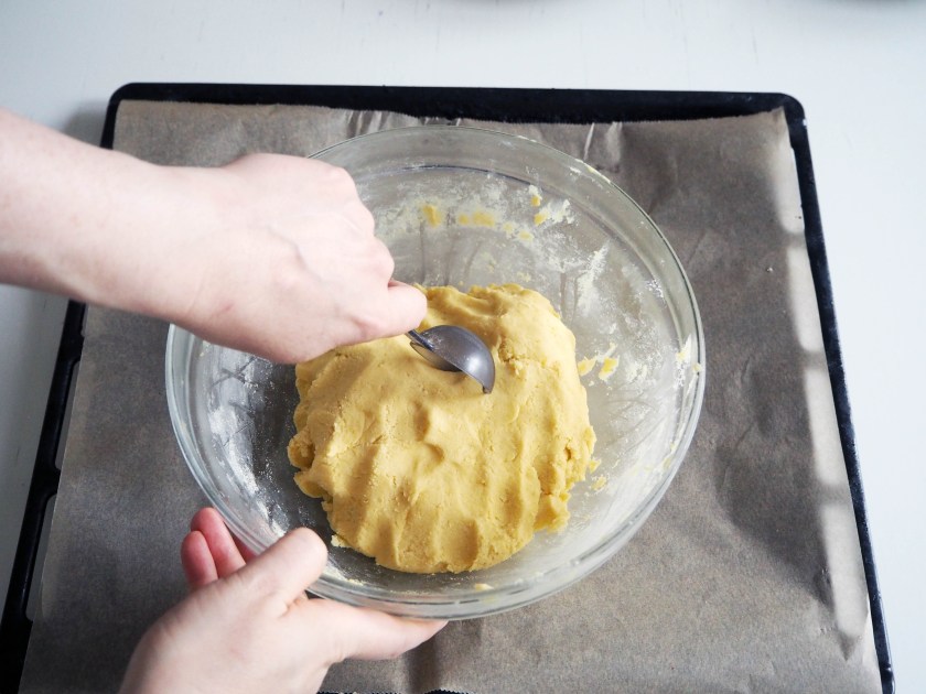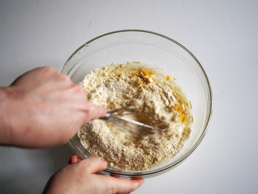 4. Add soft butter and whisk – I used my hands too in the end – to make a smooth cookie dough.