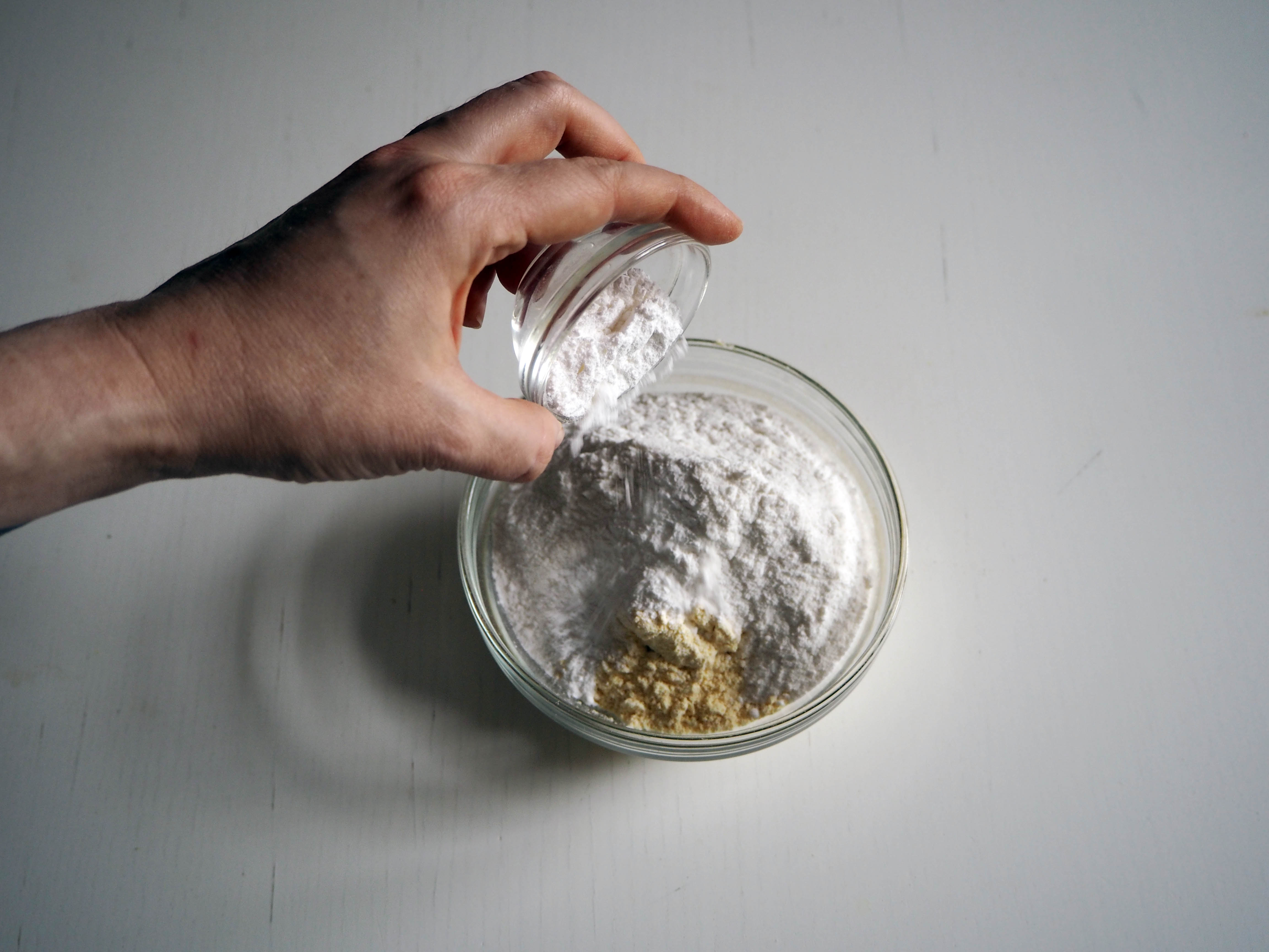 4 dl (or 1 2/3 or 200 gr) corn flour* (in Finnish: maissijauho)