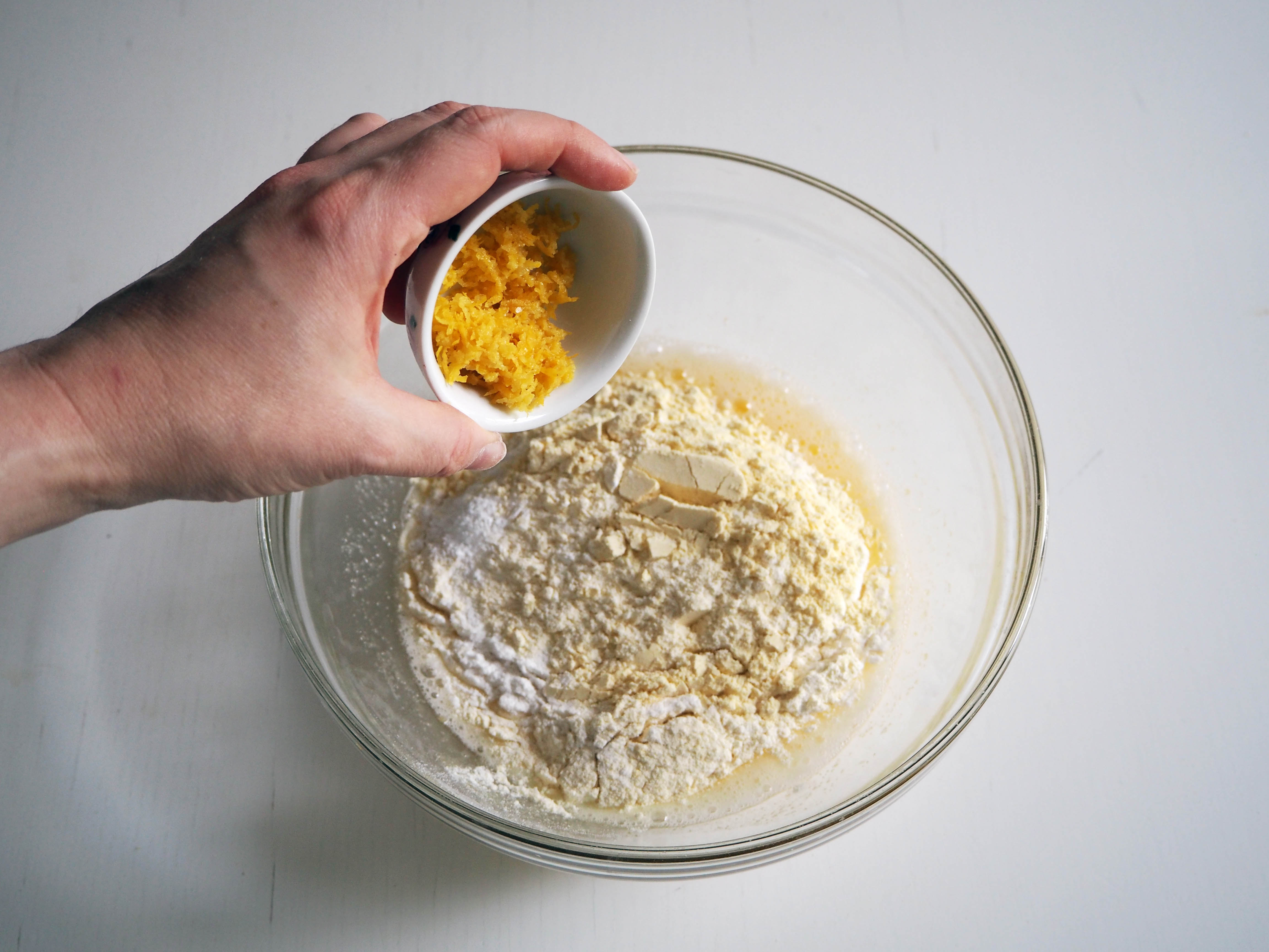 3. Add flour mixture and lemon zest and continue to whisk well.