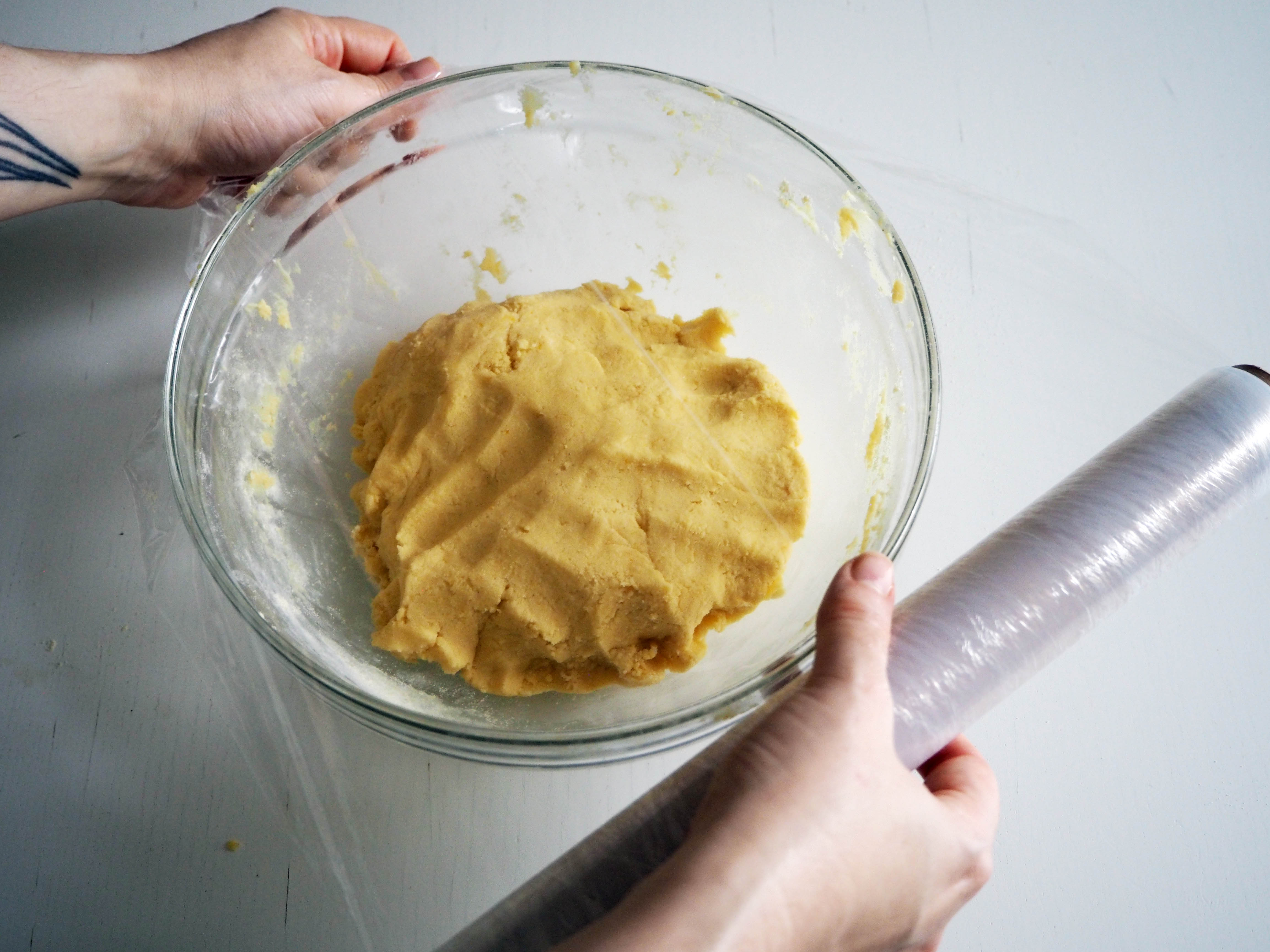 6. When the cookie dough is ready to come out of the fridge, preheat the oven to 180C.