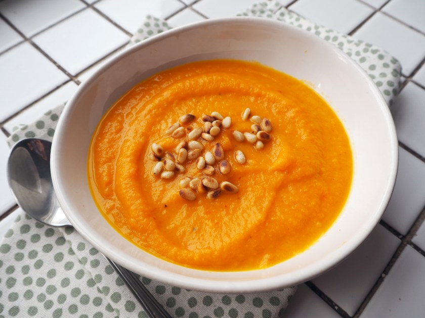 So a few days later I made this soup for myself and ever since I’ve been having it frequently. Especially now in these cold and dark November days, its bright orange colour will brighten my days too hopefully!
