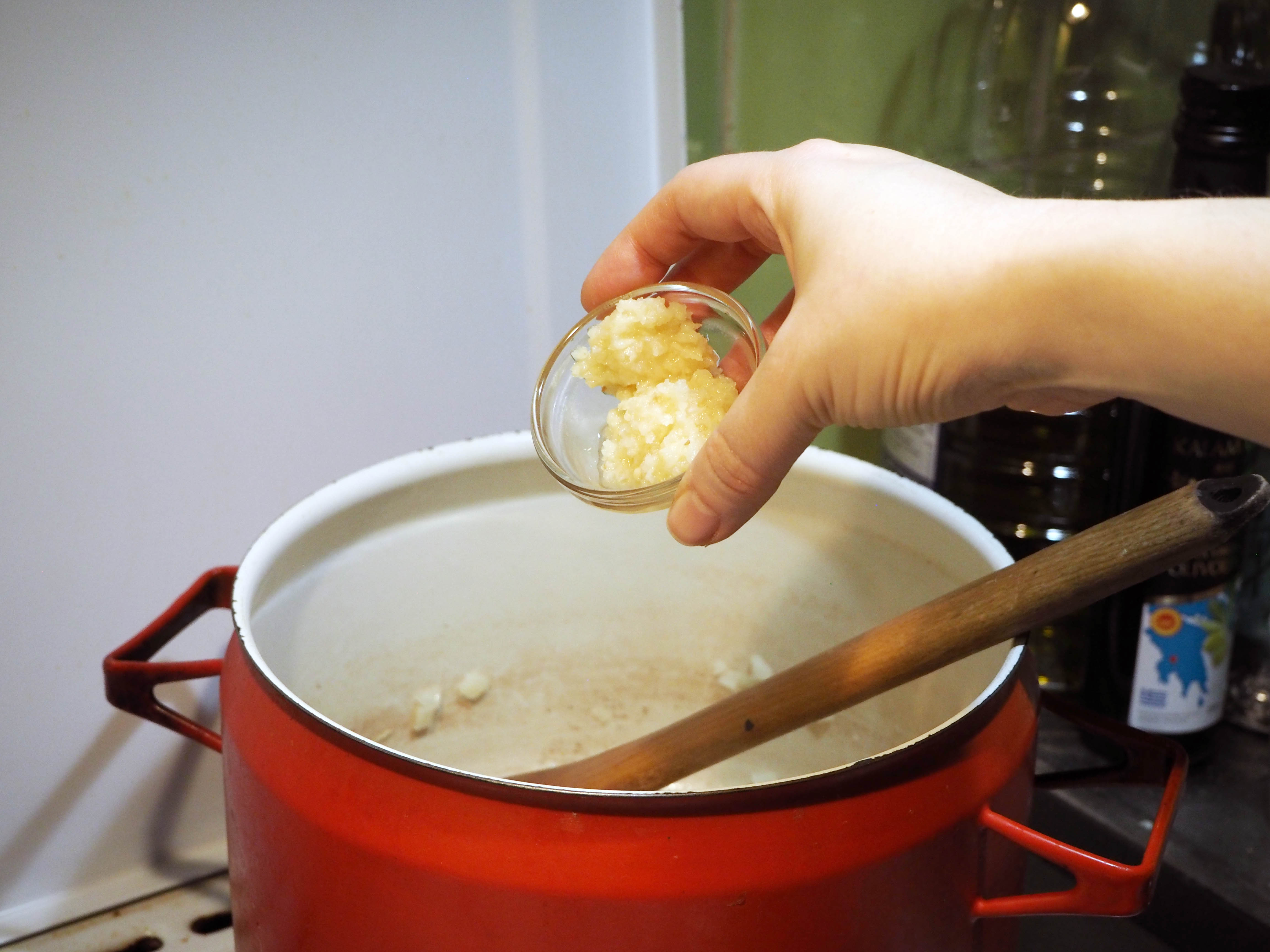 2. Add garlic and continue to sauté for 1 more minute.