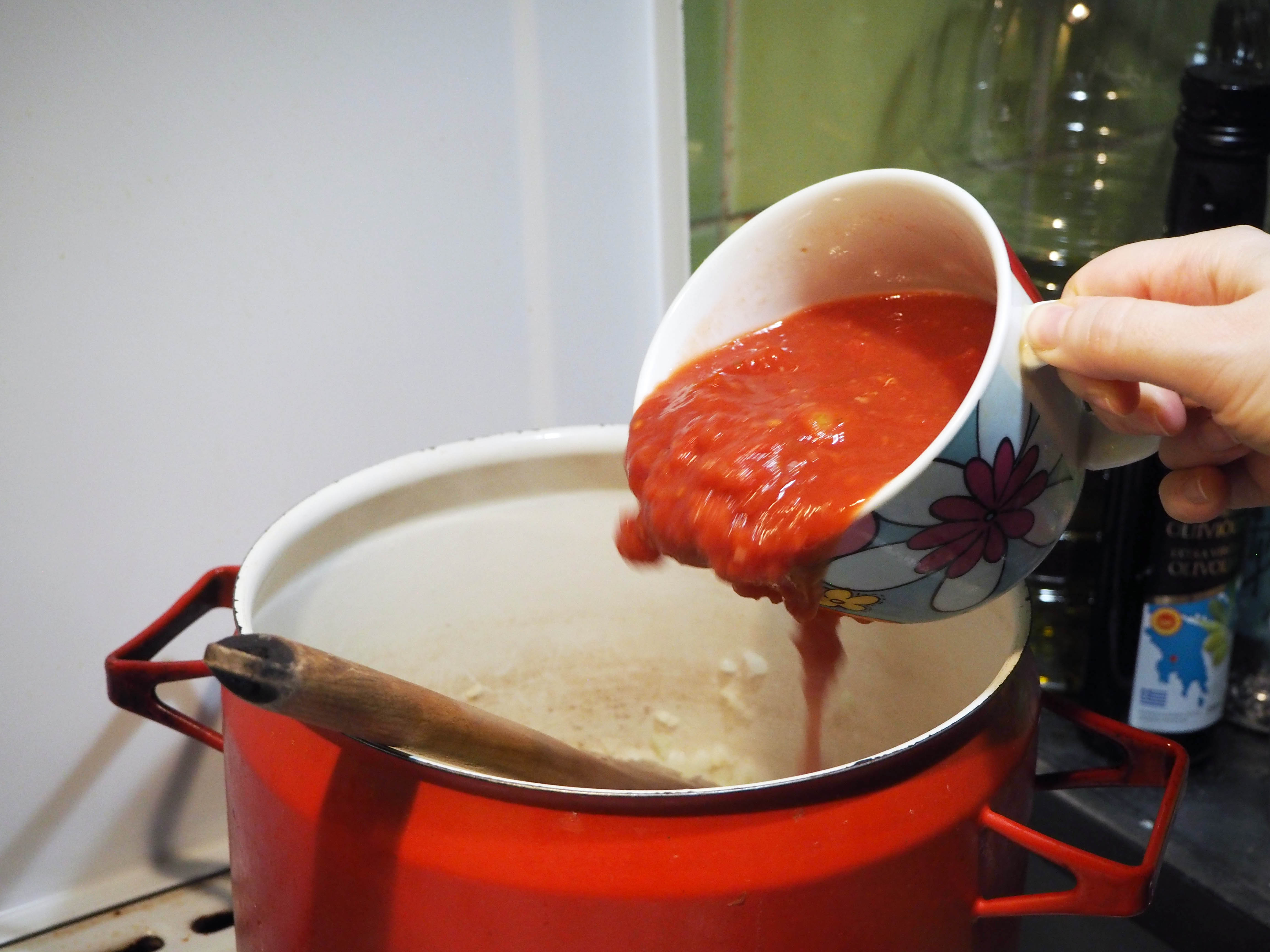 3. Add tomato purée and stir a little.