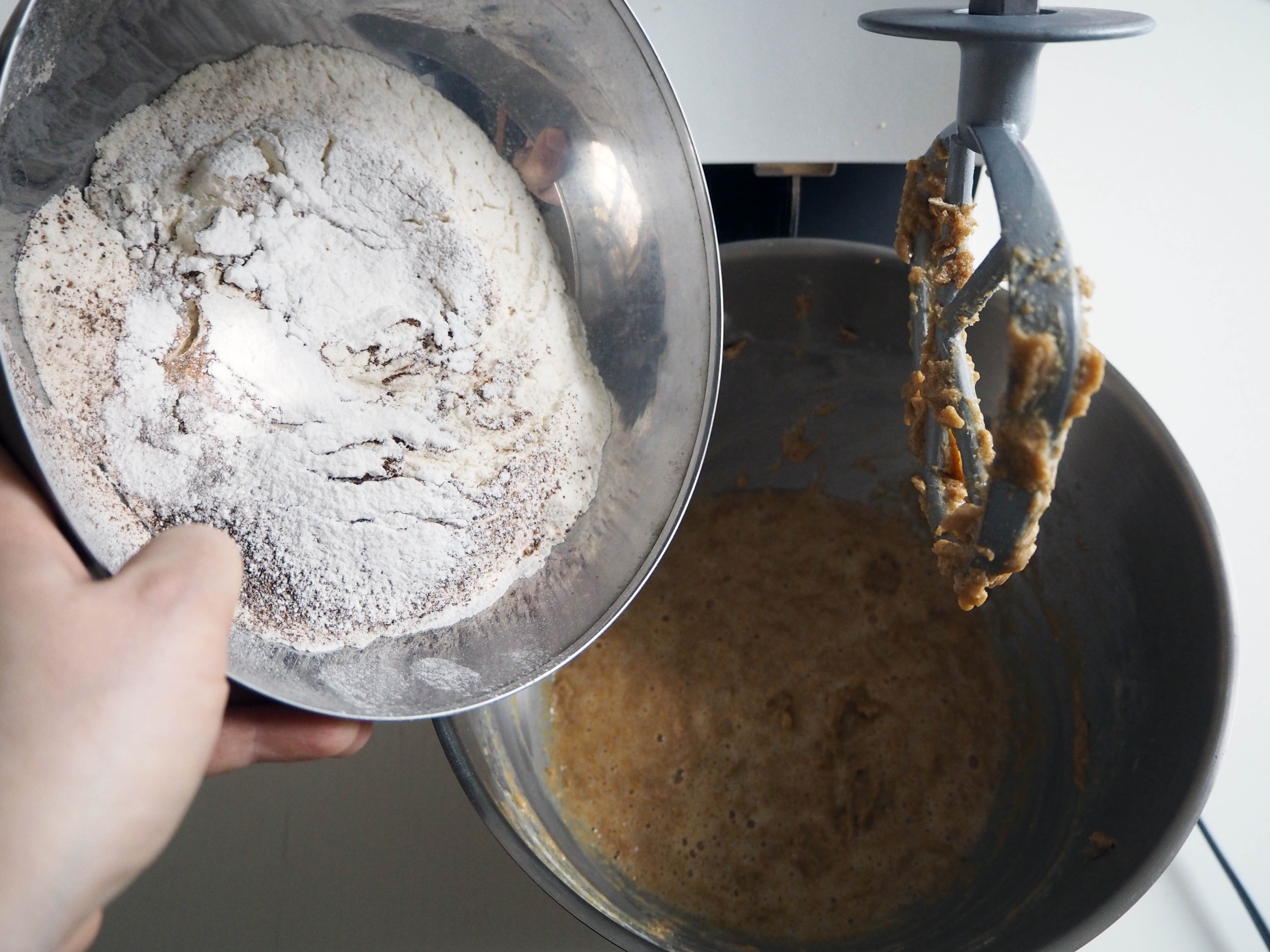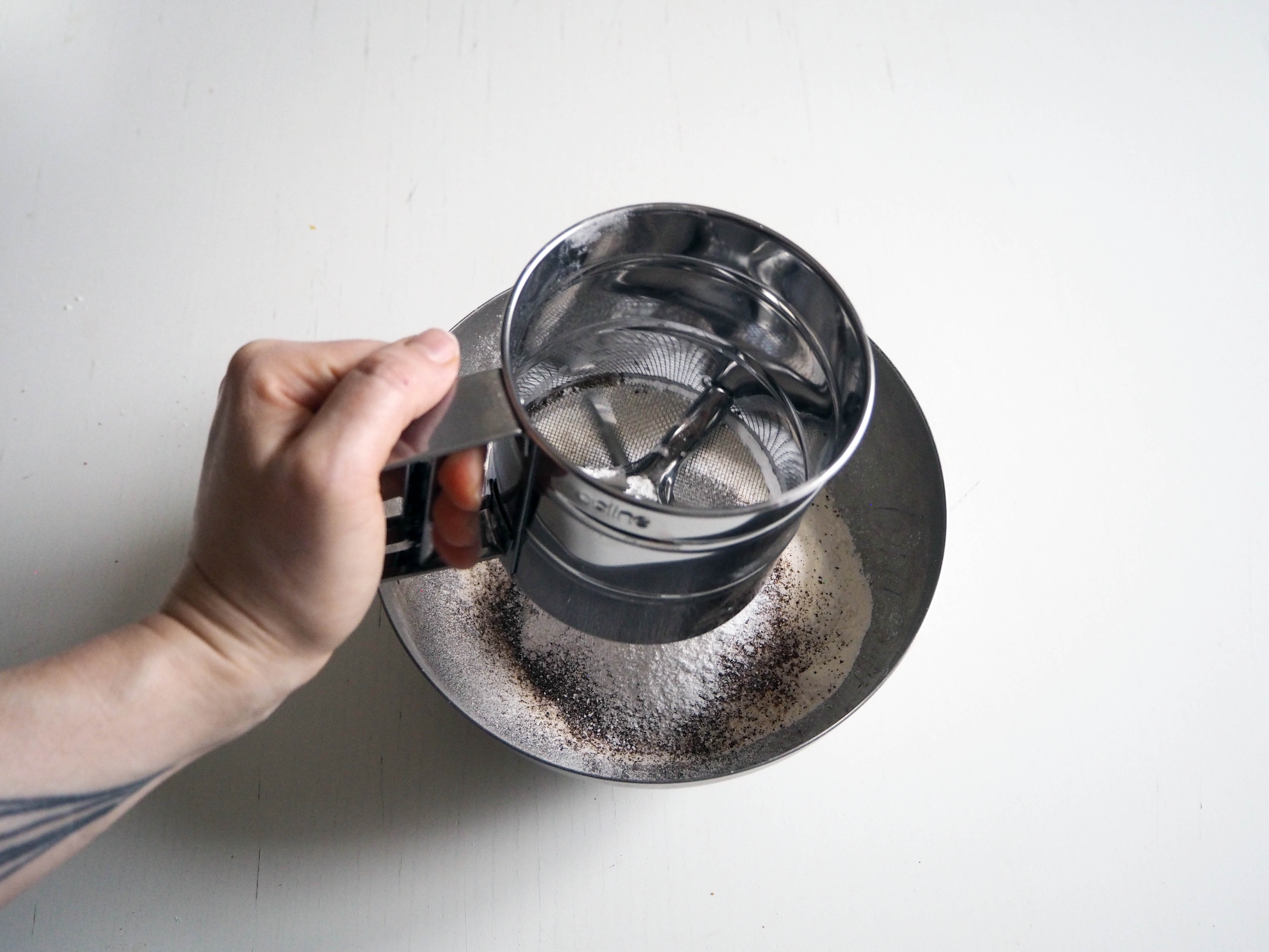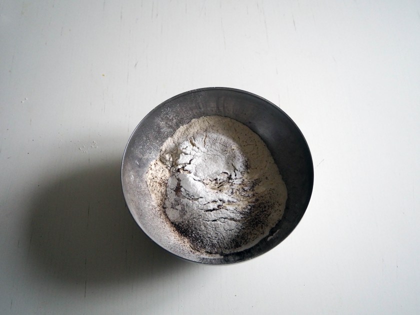 2. Sift all ingredients from flour to baking powder into a medium bowl.