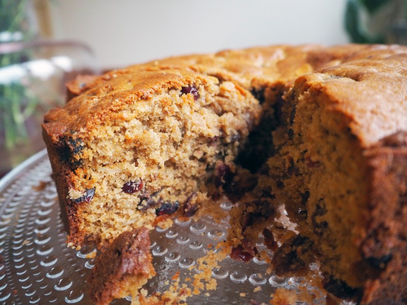 This looks dense but I believe that’s a good thing. I like a dense fruit cake, especially when it isn’t jam packed with candied fruit. Happy holidays!