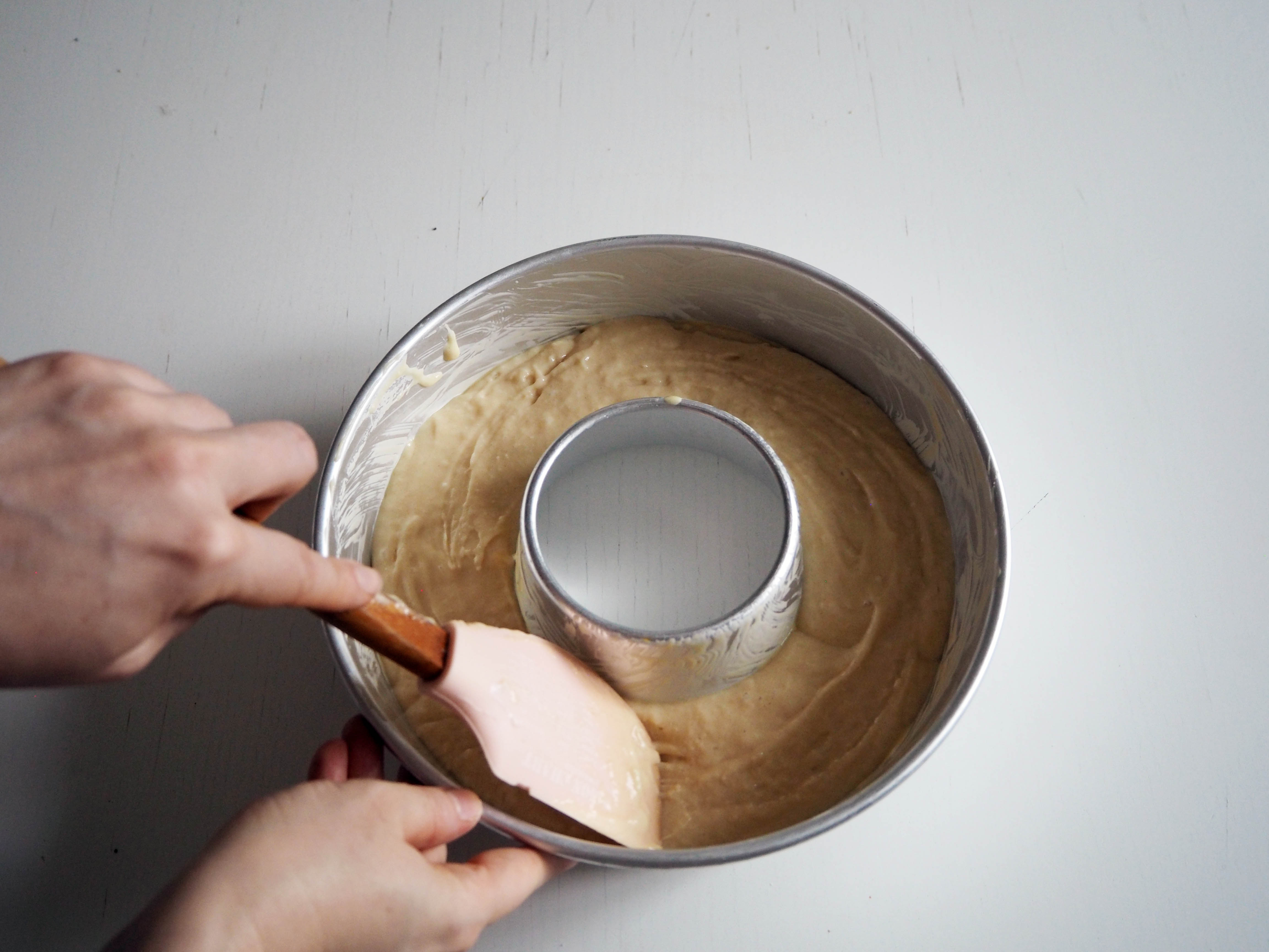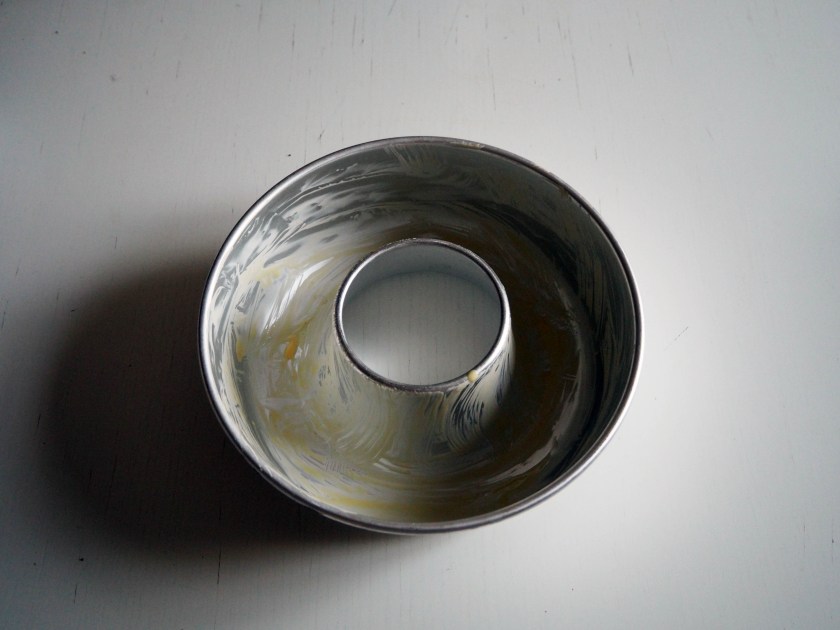 As the cake pan, I used my savarin cake tin – the one I bought a quite long time ago but never got to use. I greased it really well as I was scared that the cake would not come out of it. In the end, the cake just flopped out of the mold with a perfectly smooth base.