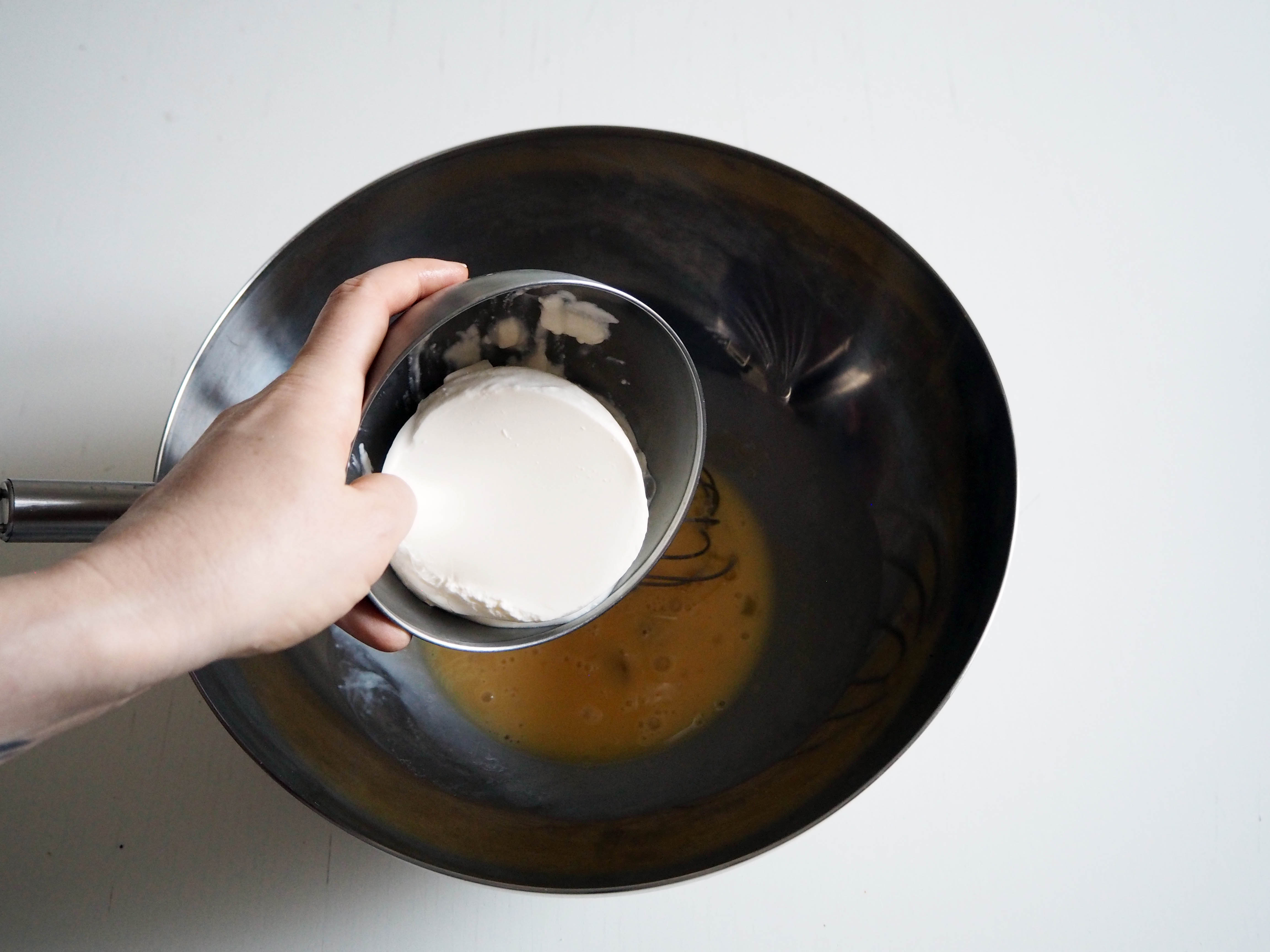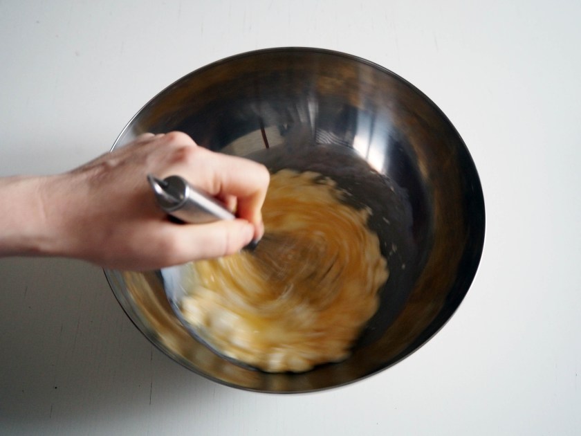 1. Preheat the oven to 180C. Grease your cake pan well and put aside.