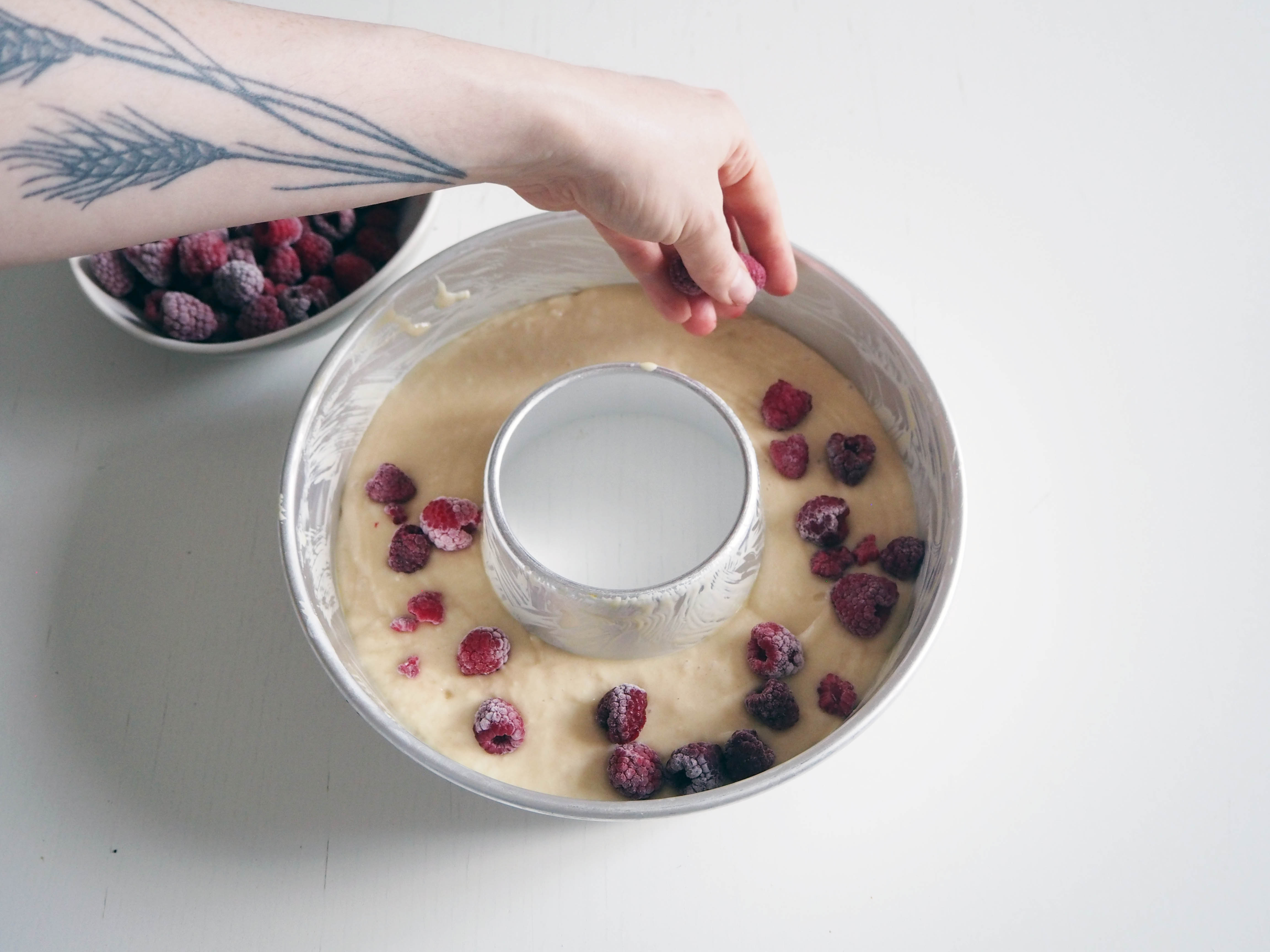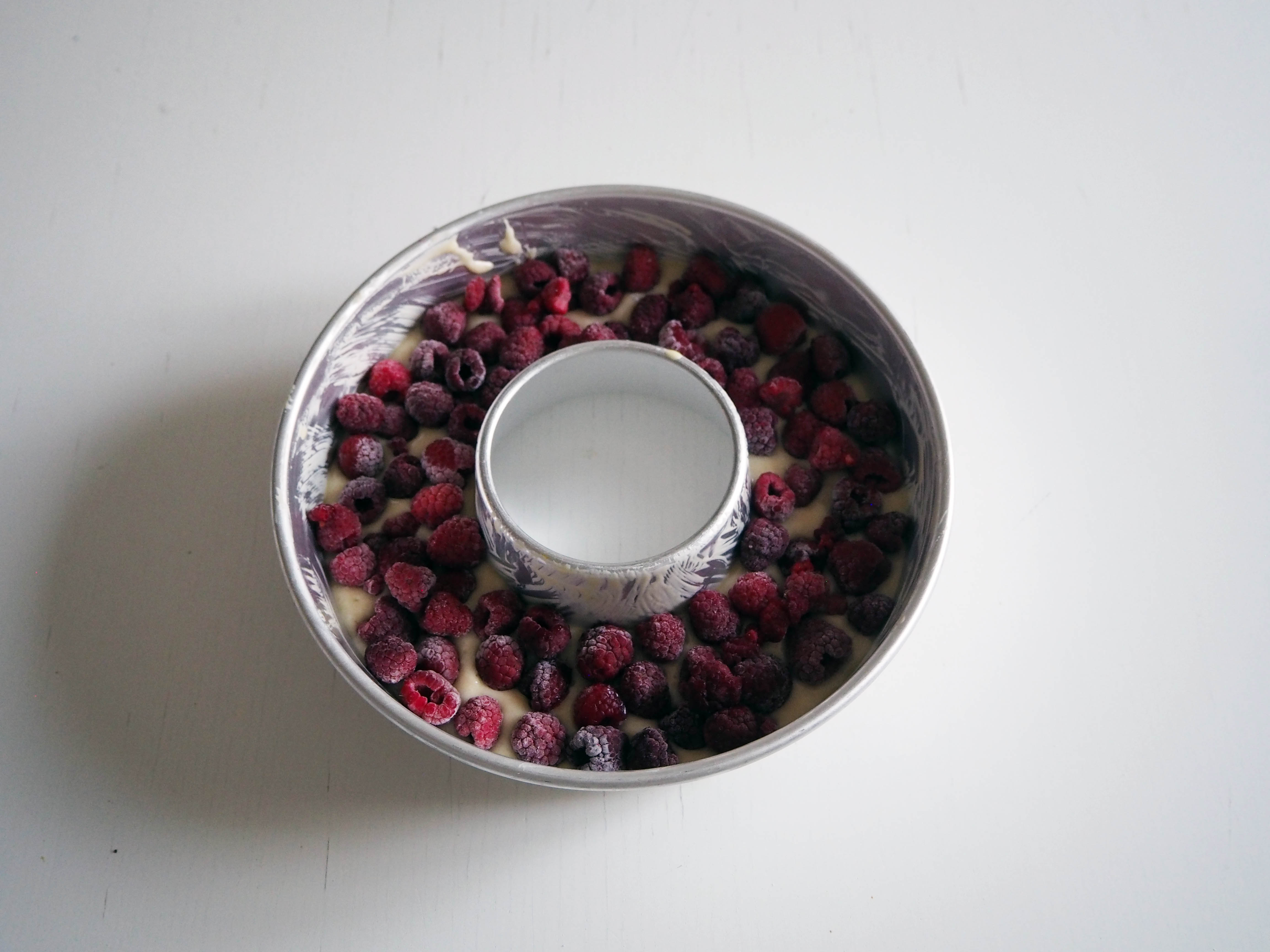 5 dl (or 2 cups) fresh or frozen raspberries (I used frozen)