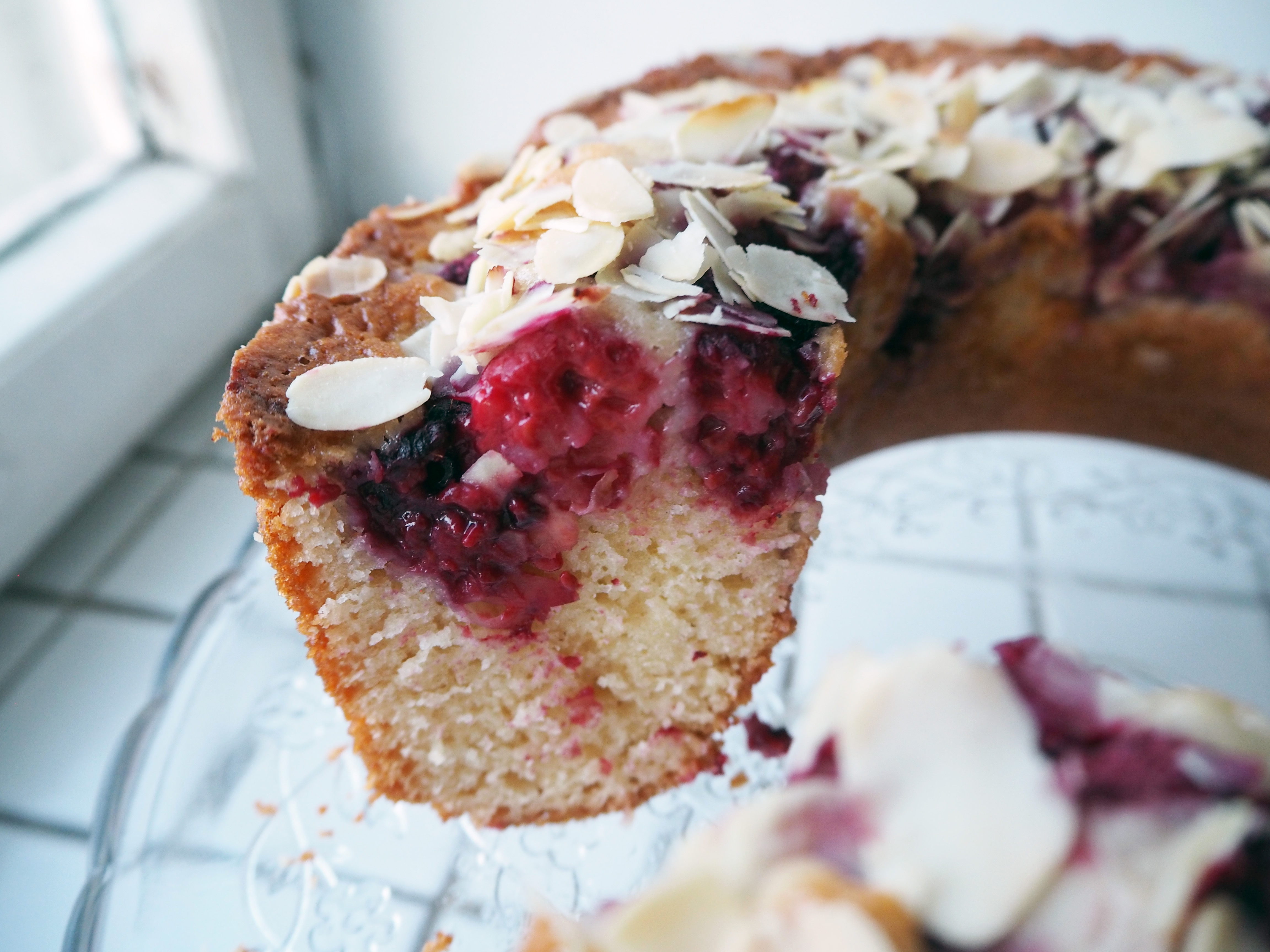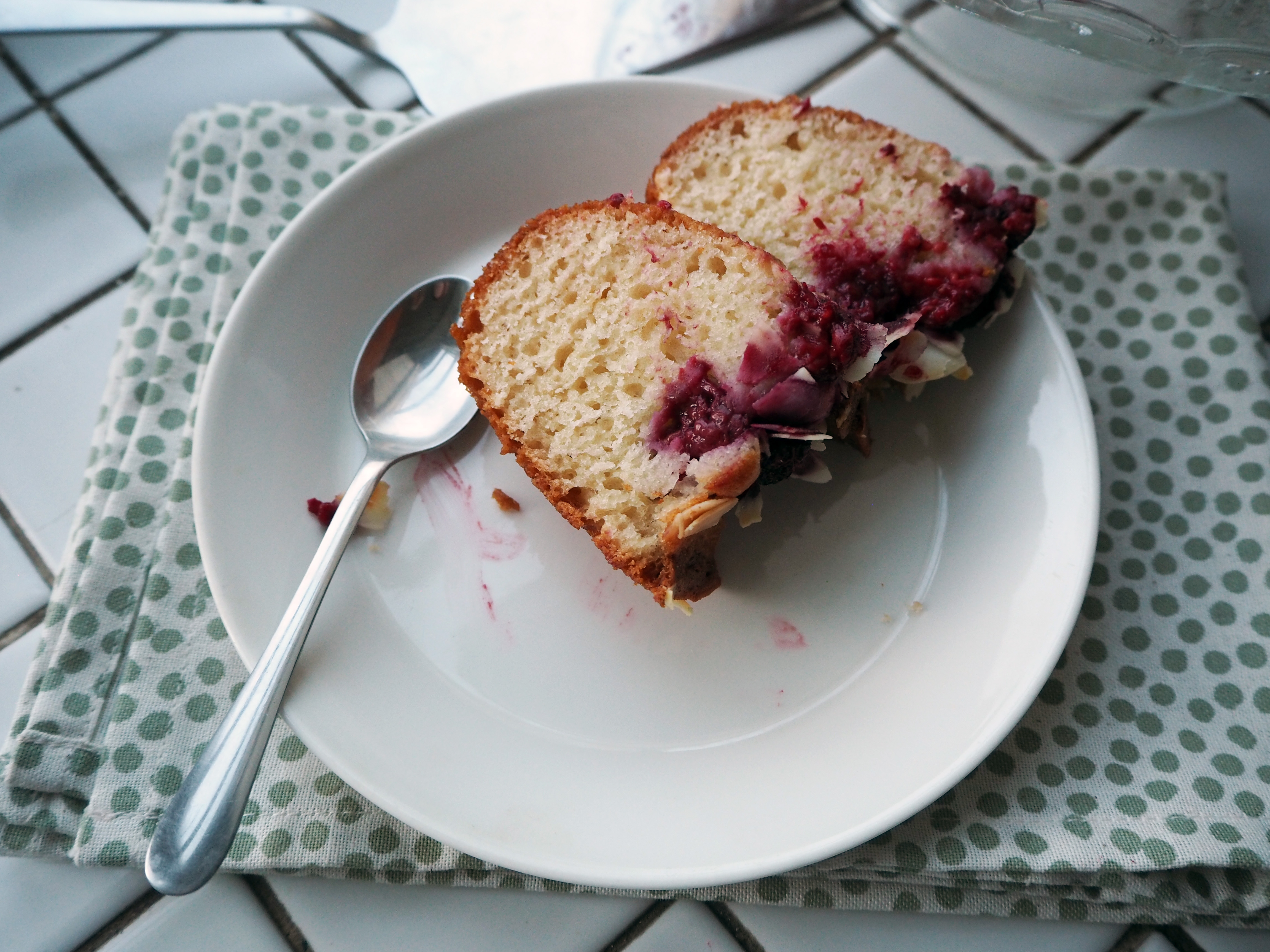 This cake is actually very similar in making to my raspberry ricotta cake. The thing is, a few days before my holiday, I saw that there was a whole package of sour cream left in my fridge. I had to use it for something fast, so I thought about a cake. I adapted a blackberry cake by Tide & Thyme, with my own changes to it. The result was this delicious and light cake.