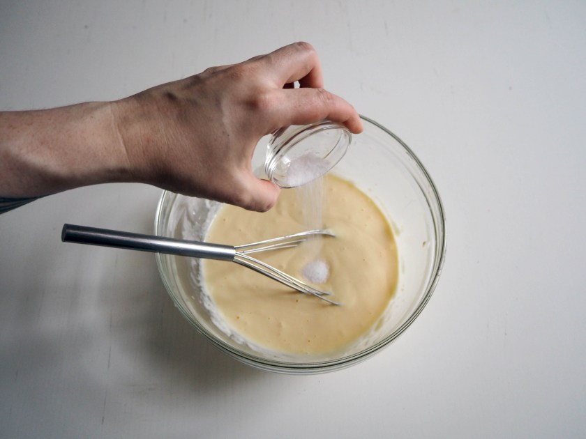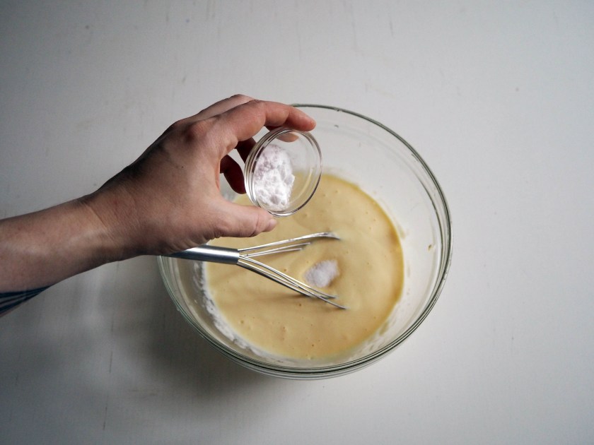 2. Add salt and baking soda and continue whisking.