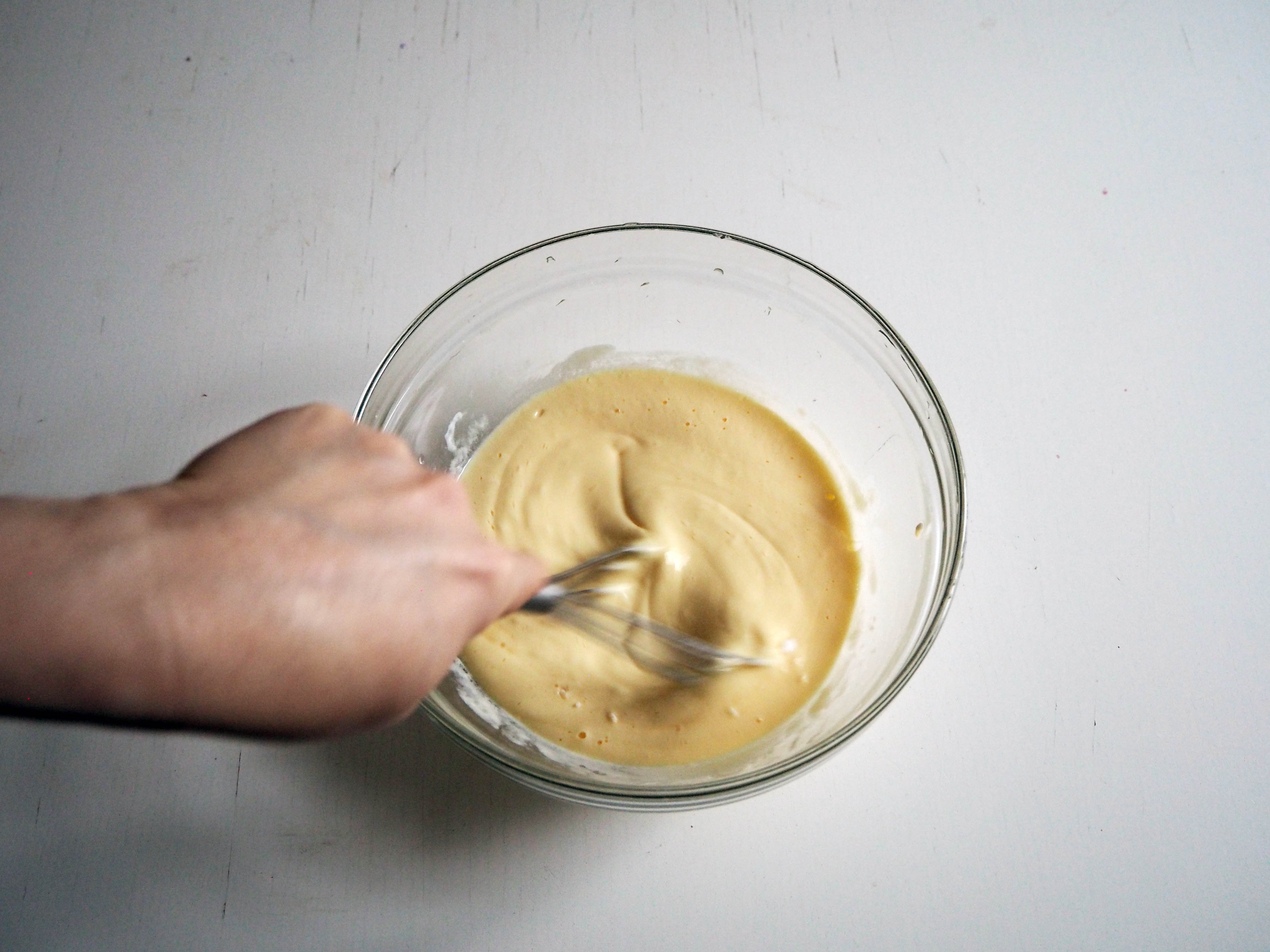 2. Add salt and baking soda and continue whisking.