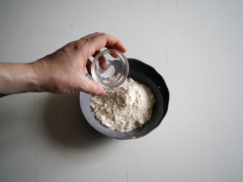 1. In a small bowl, mix coconut flour, almond flour and salt.