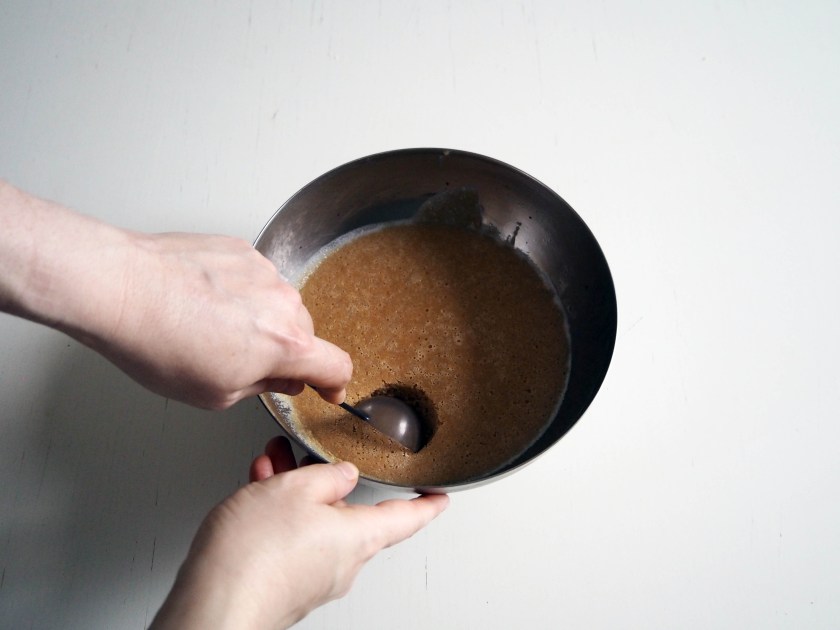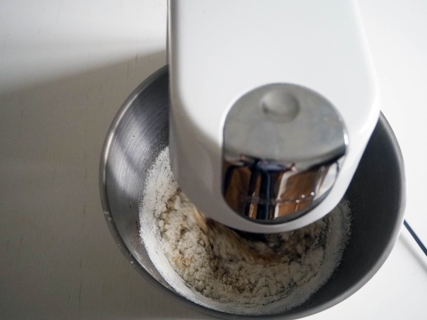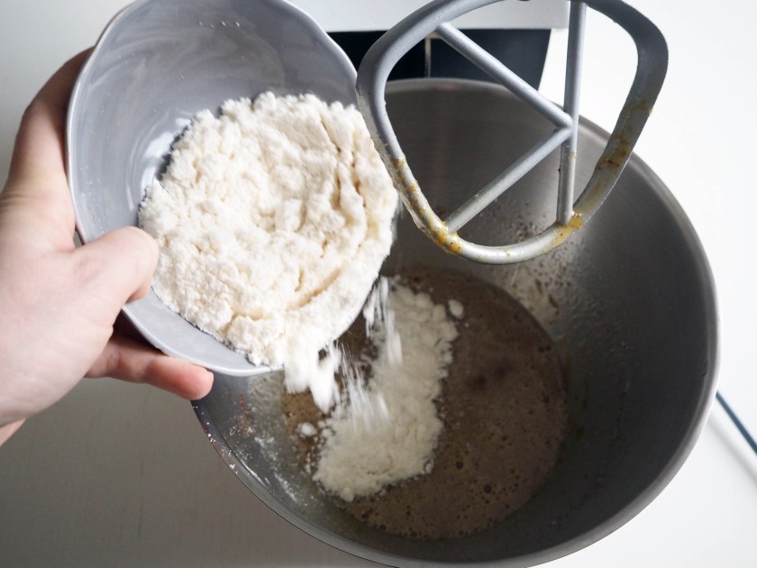 4. Add flour mixture and continue whisking until you have a smooth mixture. At this point the dough will be very soft and rather fluid.