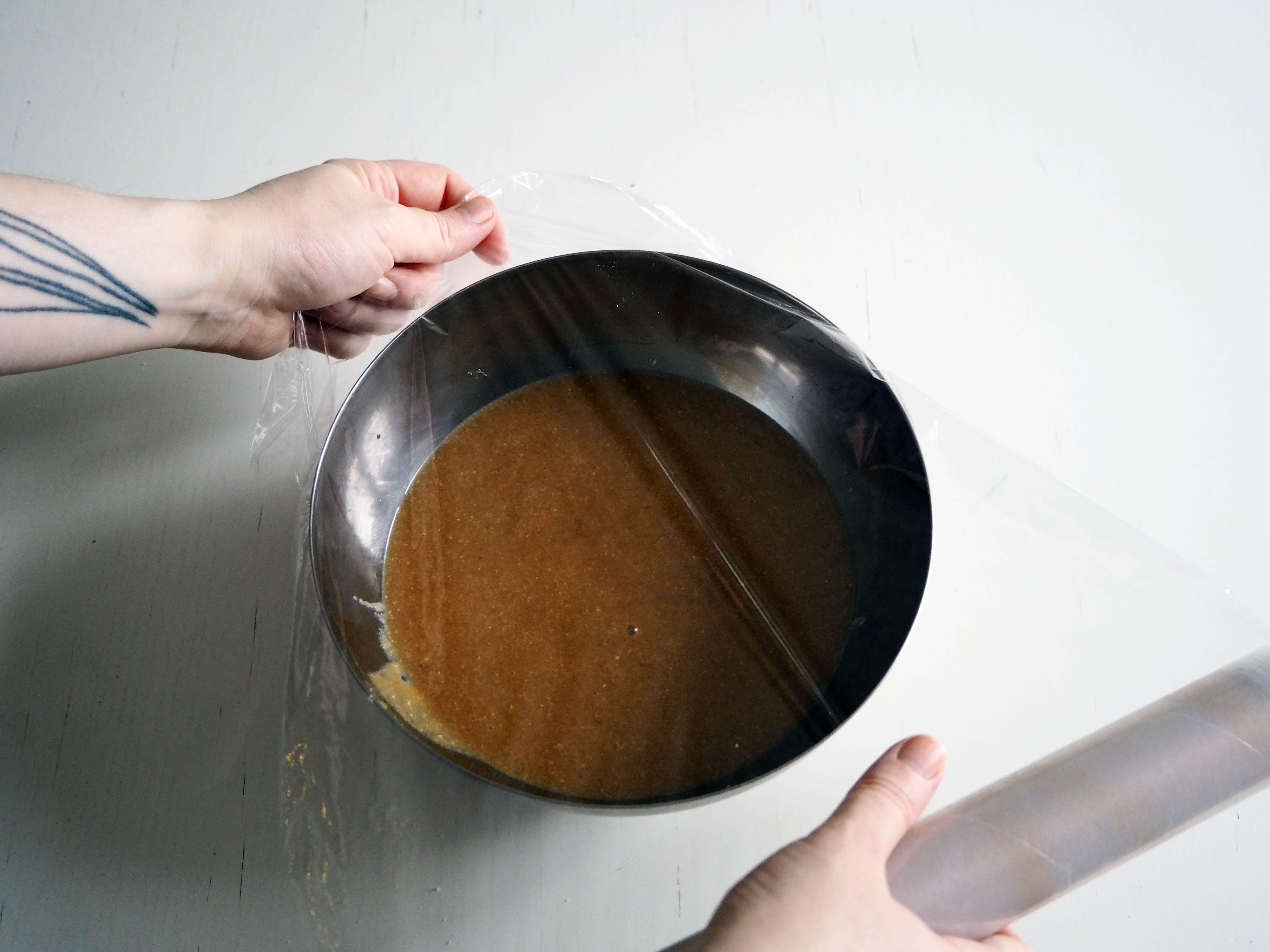 5. Transfer the dough into a medium size bowl and cover with a stretch film. Put in the fridge for 3 to 4 hours or better overnight.