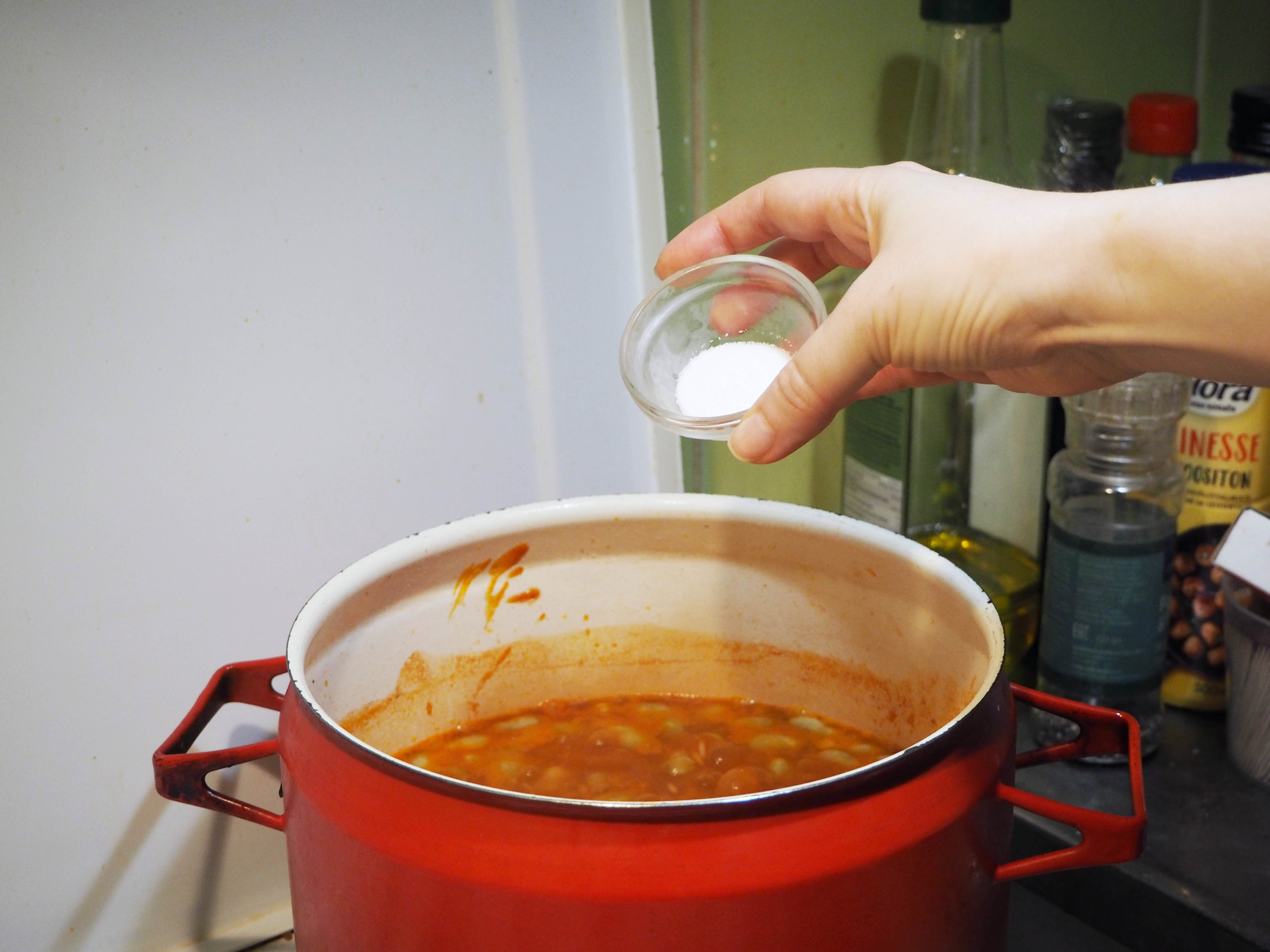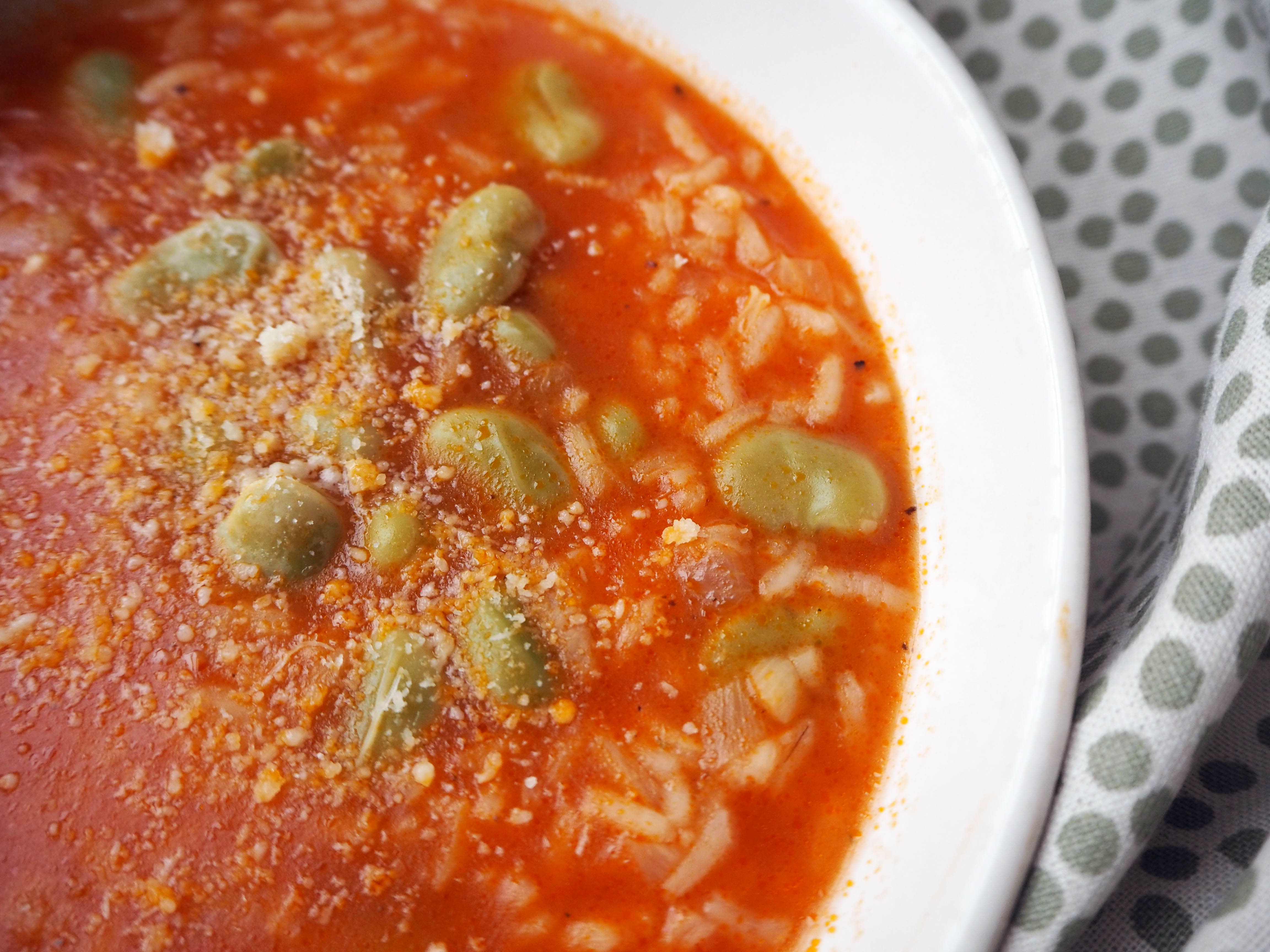 5. When the soup starts boiling, add some salt and pepper and lower the heat. Cover the pot and let the soup simmer for about 20-25 minutes or until the beans cook completely. When the soup is cooked, taste and adjust seasoning. Serve with grated parmesan if you want. The soup will get thicker and thicker as time passes so if there is any leftover, just take from the pot as much as you want to eat into a small pan, add water to thin it (as much as you like) and heat it while stirring frequently. Enjoy!