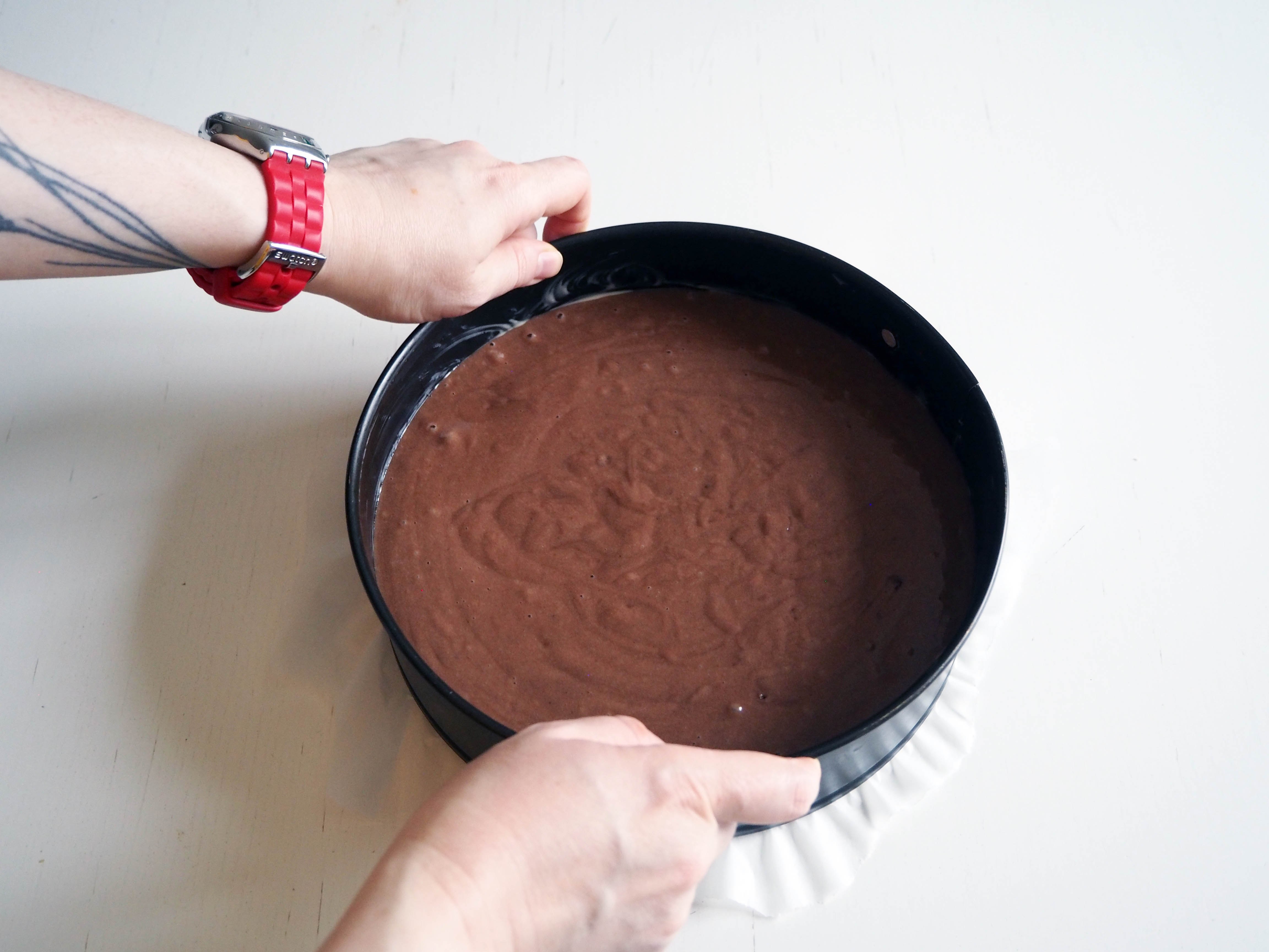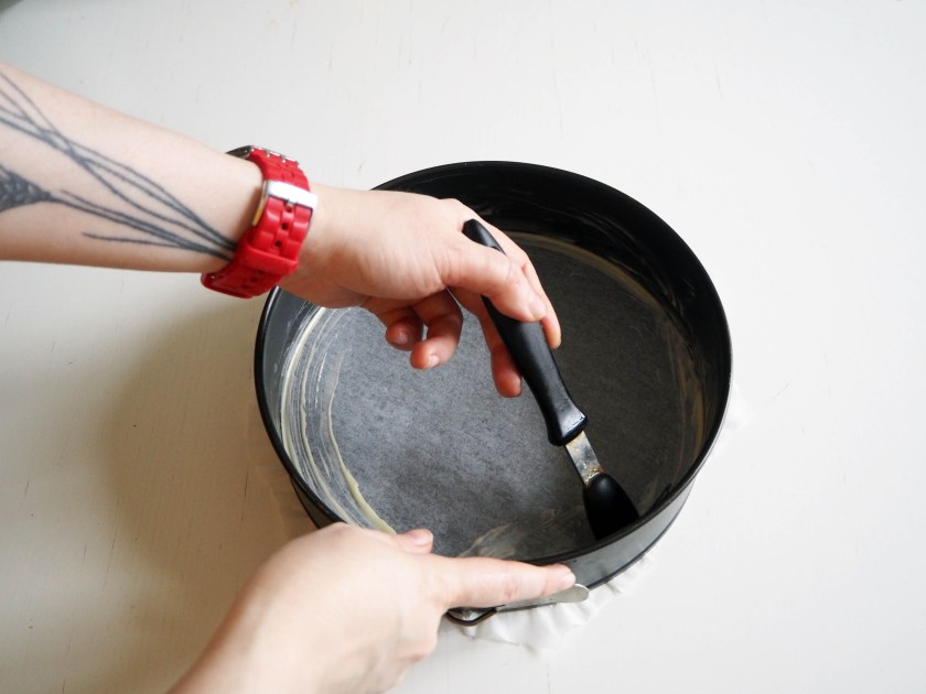 1. Preheat the oven to 180C. Grease a 24cm springform (or another type) cake pan and cover the base with a baking paper.