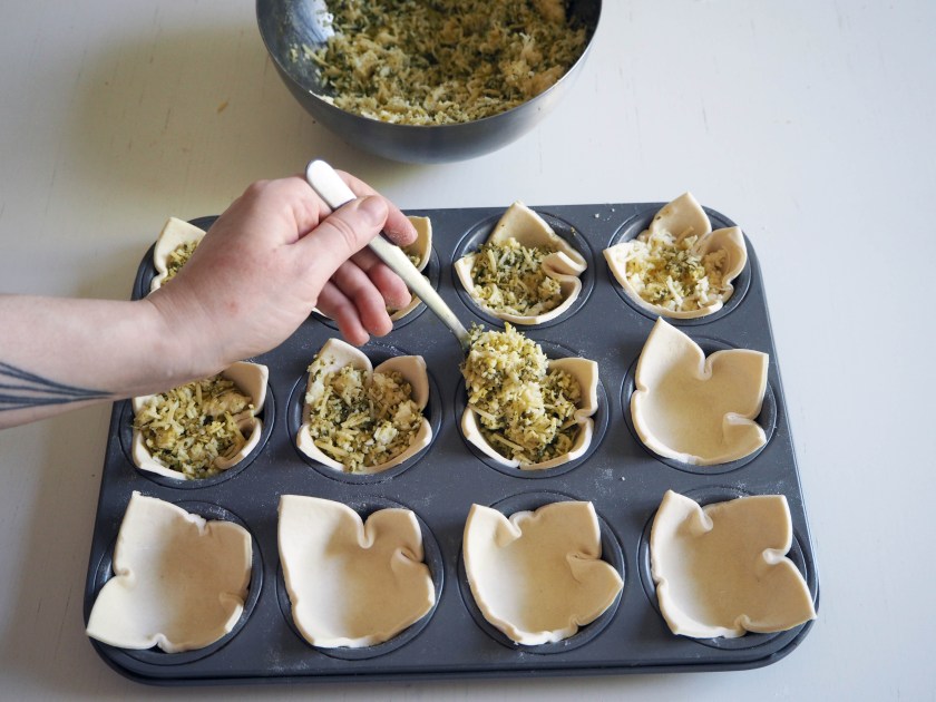 1. Preheat the oven to 200C. Grease the muffin tin and put aside.