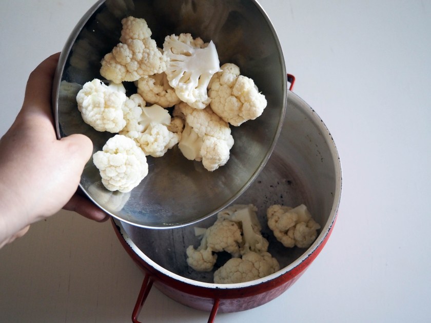 *My cauliflower was 630 gr. and the florets I used were 410 gr. in total.