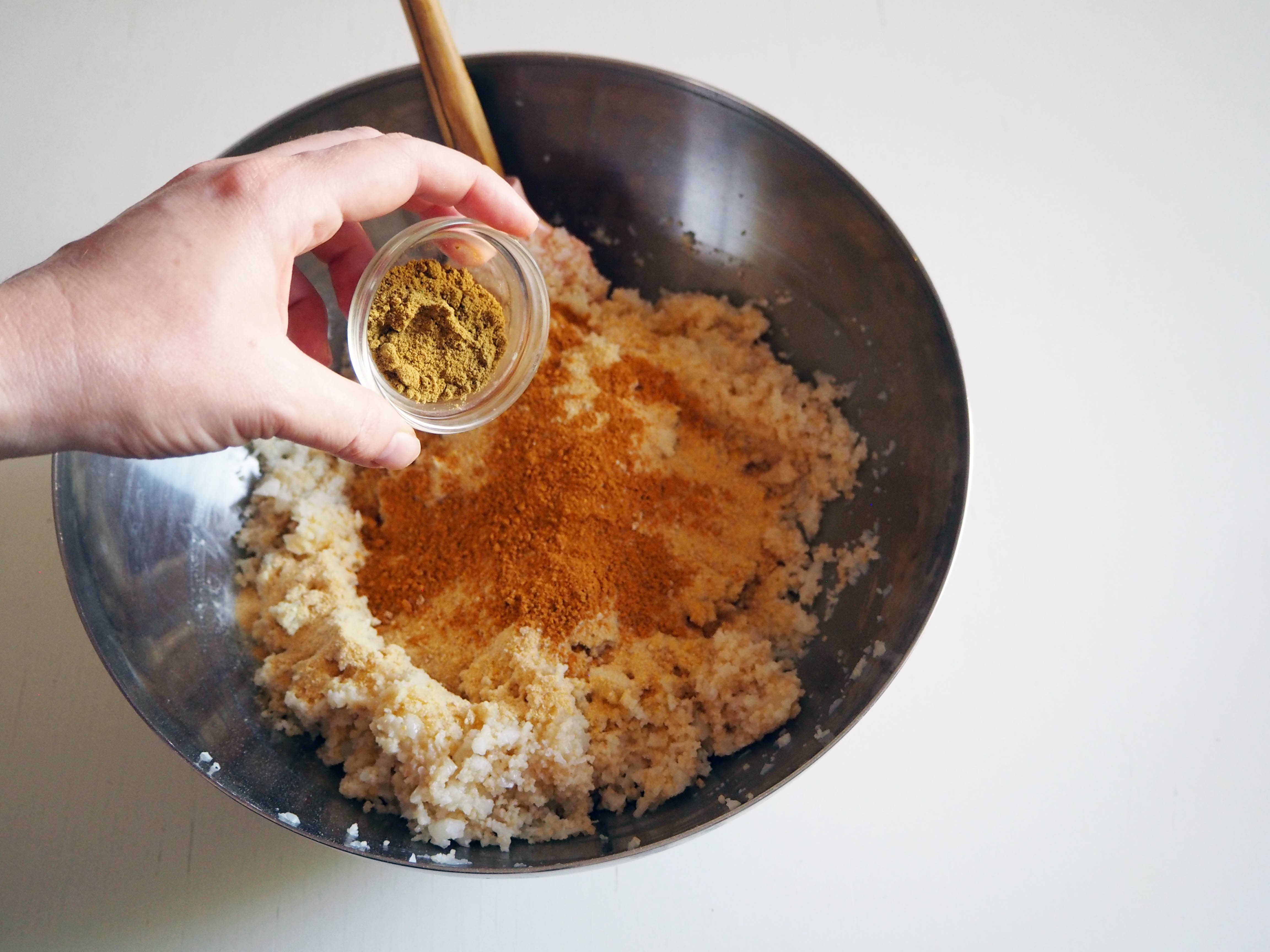 7. Knead the mixture a little to make sure that all the spices are mixed evenly.